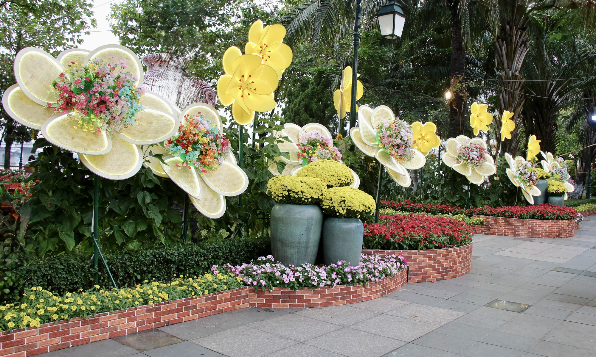 Những tiểu cảnh hoa rực rỡ sắc màu trên đường hoa.