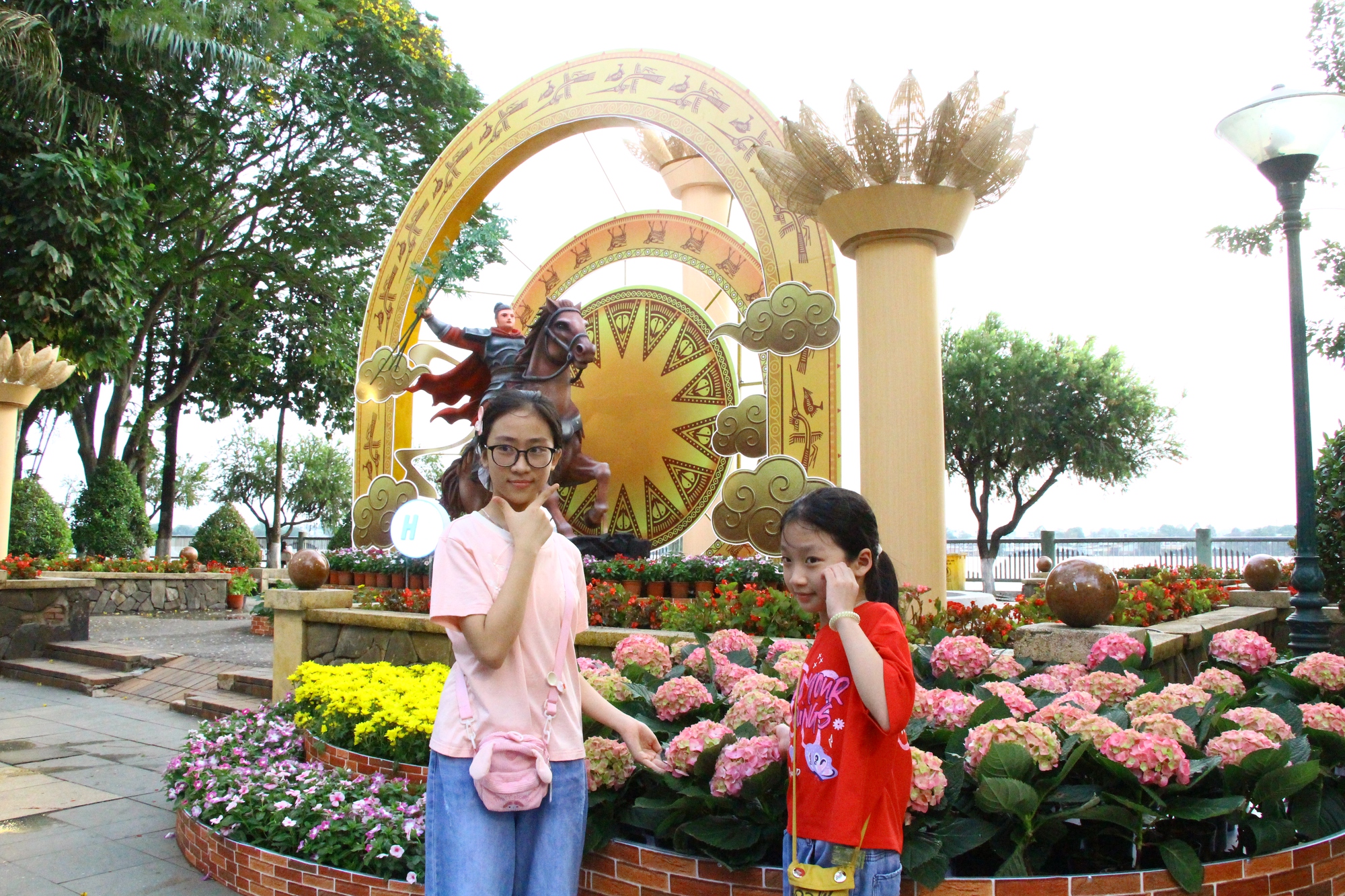 Các cháu bé được bố mẹ ghi lại kỷ niệm ở đường hoa.