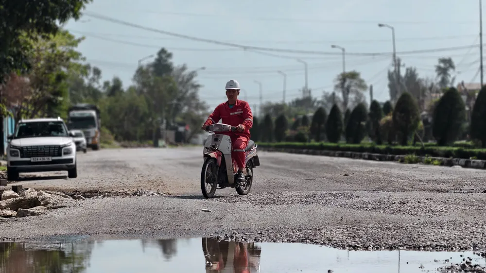 Video: Đường huyết mạch trong khu kinh tế Dung Quất nát bét, dày đặc ổ gà, ổ voi.