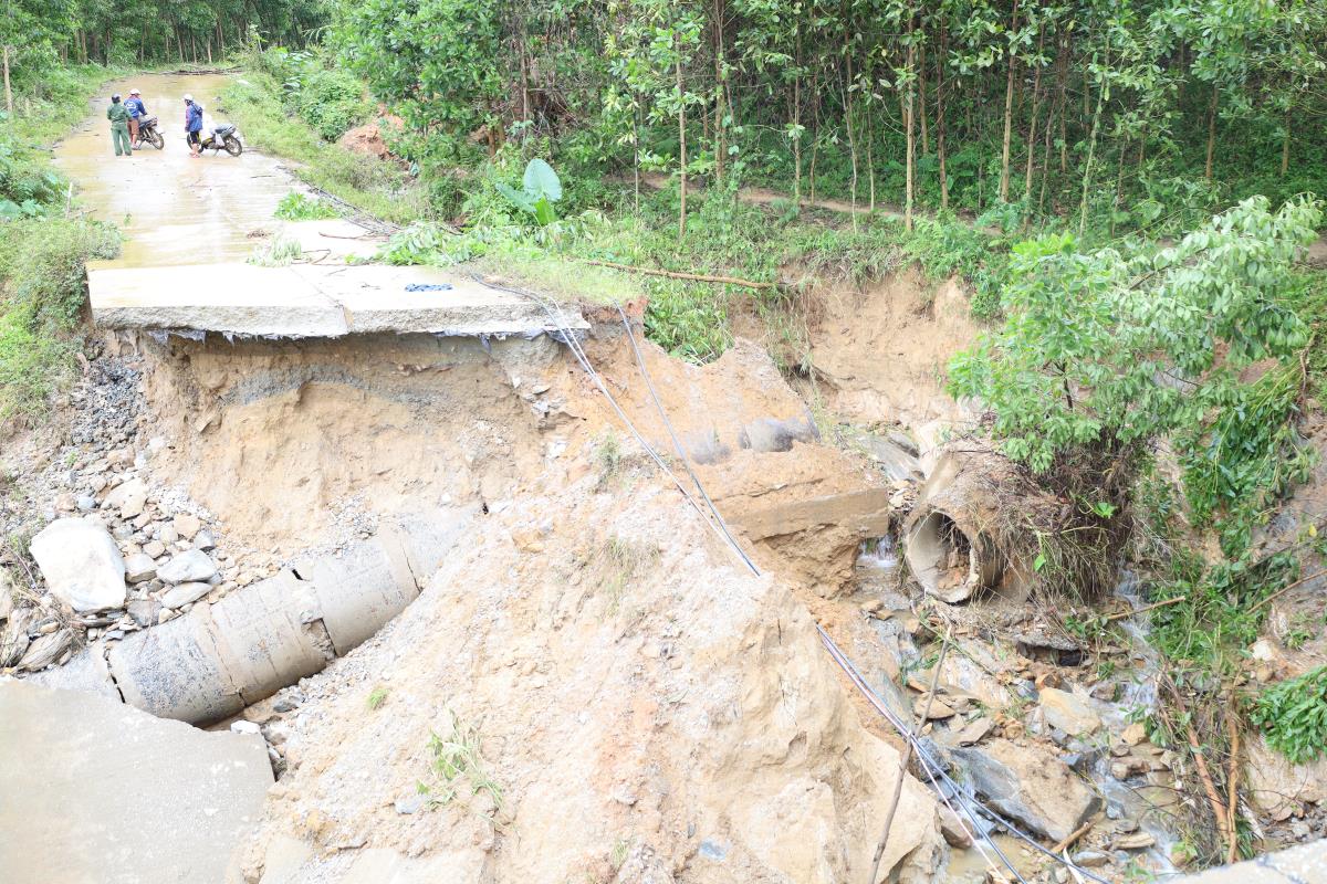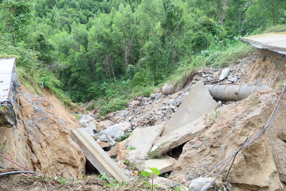 “Trước đây chỗ này có con suối rất nhỏ, bên dưới đường đã được đặt ống cống. Thế nhưng đợt mưa vừa qua lũ về mạnh, nước chảy xiết cuốn và xé toạt cả những đoạn bê-tông kiên cố”- anh Hồ Văn Cường, người dân địa phương thông tin, đồng thời cho biết thêm, phía trong còn nhiều điểm sạt lở lớn hơn rất nhiều, cuốn trôi, đứt gẫy nhiều đoạn đường.
