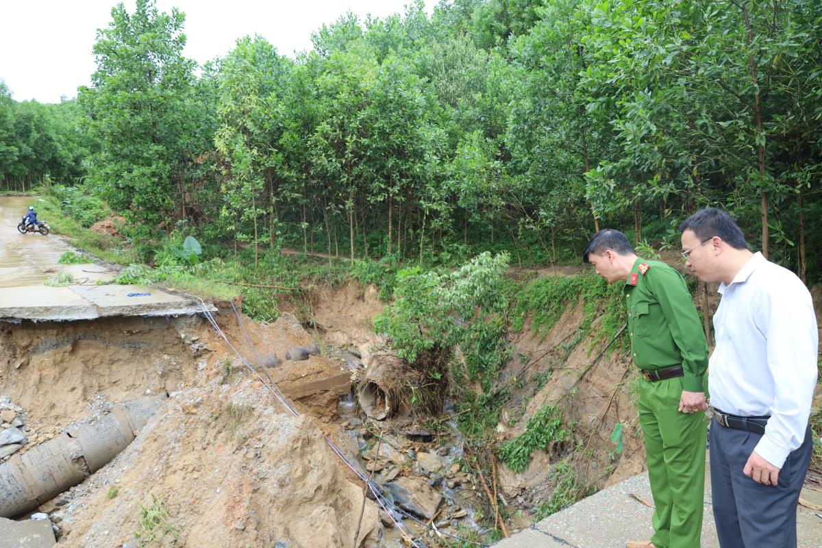 Lãnh đạo xã Trà Đốc kiểm tra các điểm sạt lở trên tuyến ĐH8.