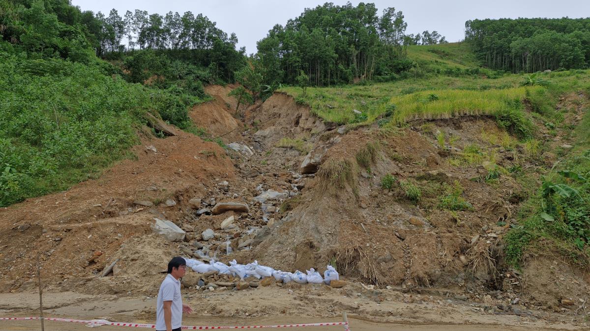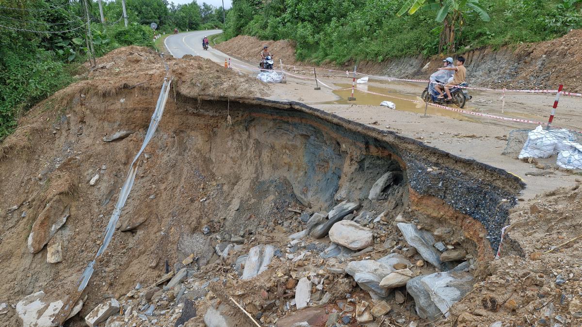 Một số đoạn sạt lở nguy hiểm trên tuyến đường Đông Trường Sơn qua địa phận xã Trà Đốc.