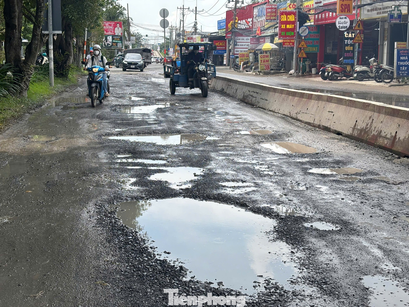 Đoạn dài khoảng 500m từ đường Cầu Vồng 5 đến gần cầu Gò Công bị hư hỏng nặng, nửa mặt đường ngập nước, nửa còn lại gồ ghề, đầy ổ gà, ổ voi.