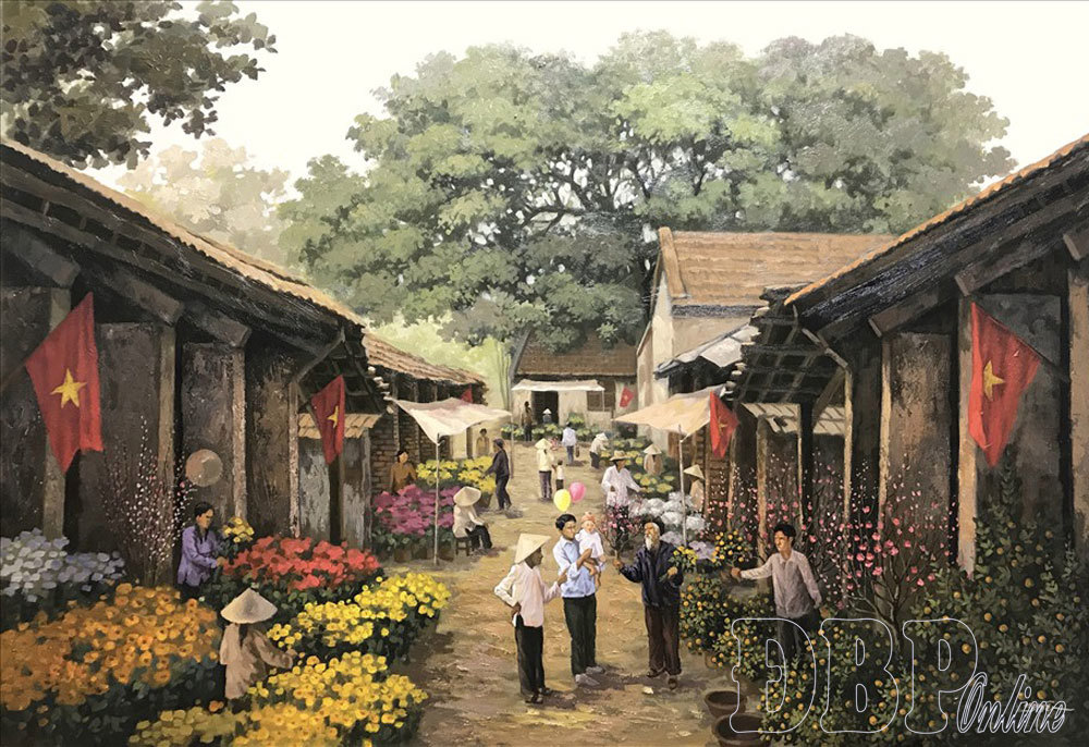 Tôi lẽo đẽo theo mẹ xuống chợ ngày Xuân, đường làng nâng niu đôi bàn chân nhỏ nương theo nhịp dặt dìu của đôi quang gánh nhịp nhàng. Mùa Xuân ấm áp vương rắc đôi sợi mưa bụi bâng khuâng. Mẹ giục tôi nhanh chân cho kịp buổi chợ sớm mai khi tôi cứ mải mê ngắm nhìn những bông hoa dại hai bên đường. Thật lạ, đi trên đường không biết bao nhiêu lần những mỗi độ Xuân về lòng tôi lại xốn xang. Vừa thân quen lại vừa xa lạ. Mẹ tôi cười, rằng đường làng được khoác áo mới thì phải khác, phải lạ. Hai mẹ con cứ thế đi trong niềm vui của đường làng mới mà đến chợ.