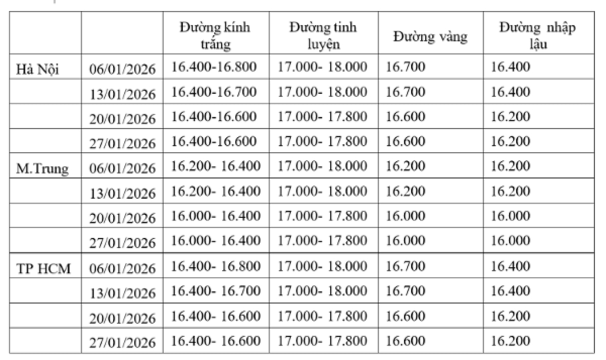 Giá đường vàng từ mức 16.200 - 16.700 đồng/kg đầu tháng giảm xuống còn 16.000 -16.600 đồng/kg vào cuối tháng. Giá đường kính trắng giảm tương tự, trong khi đường tinh luyện dao động quanh mức 17.000 -18.000 đồng/kg.