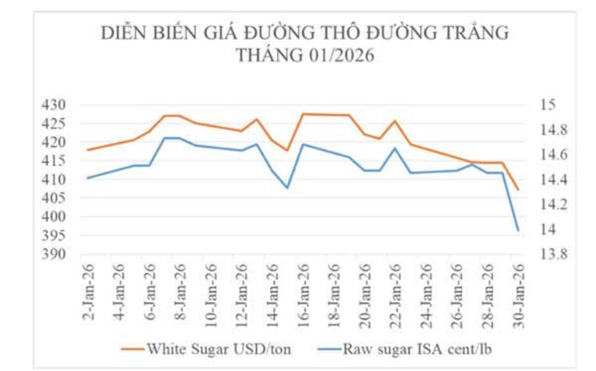 Diễn biến giá đường thế giới trong tháng 1/2026. Nguồn: Hiệp hội Mía đường Việt Nam.