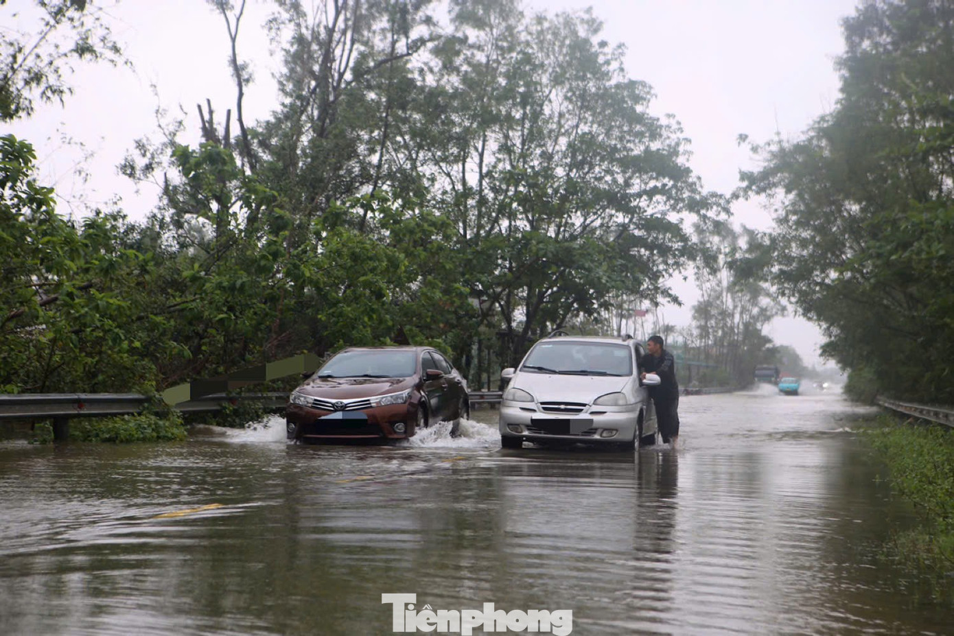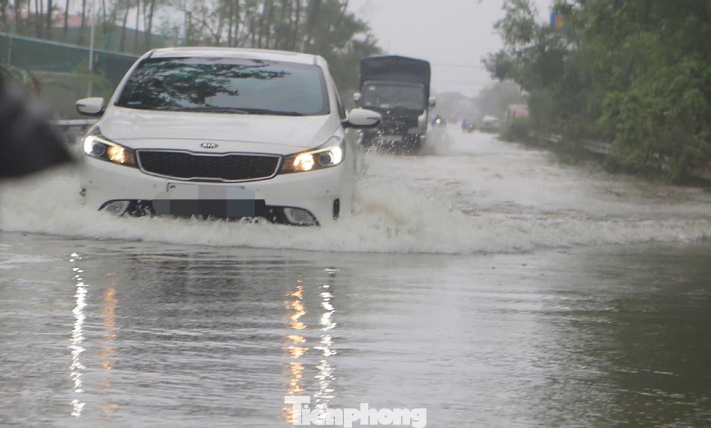 Một số phương tiện khi đến gần khu vực ngập đã phải dừng lại quan sát tình hình. Thấy nước dâng cao và chảy xiết, nhiều tài xế quyết định quay đầu tìm hướng đi khác để tránh rủi ro.
