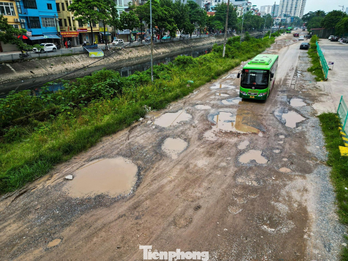 Hiện trạng tuyến đường Nguyễn Cảnh Dị kéo dài, nhiều thời điểm chỉ xe buýt với gầm cao là di chuyển được.