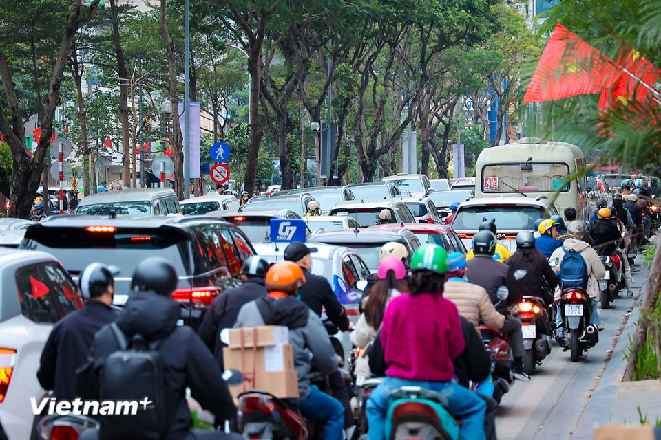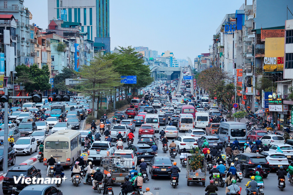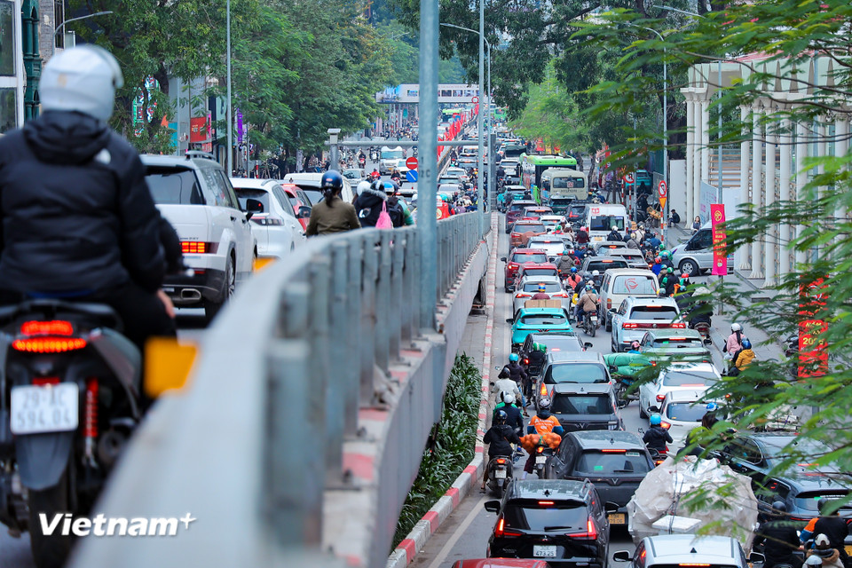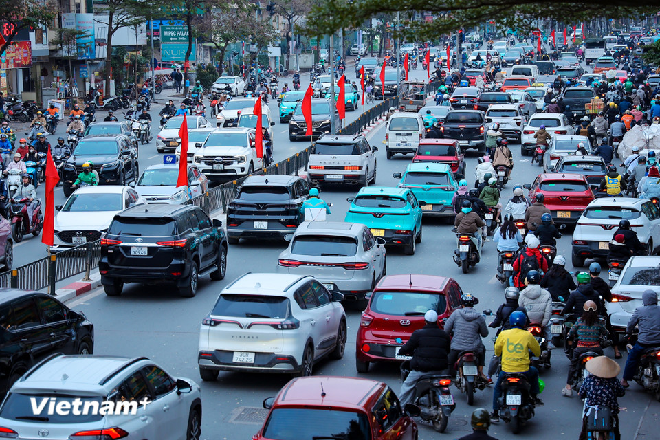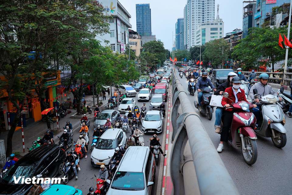 Ghi nhận của phóng viên tại các tuyến đường Vành đai, Láng Hạ, Chùa Bộc, đường phố luôn ở tình trạng đông đúc. (Ảnh: Hoài Nam/Vietnam+)