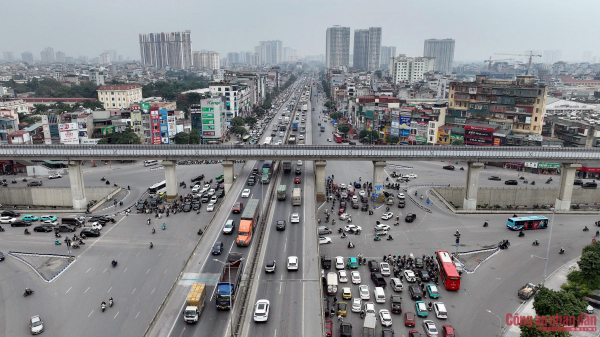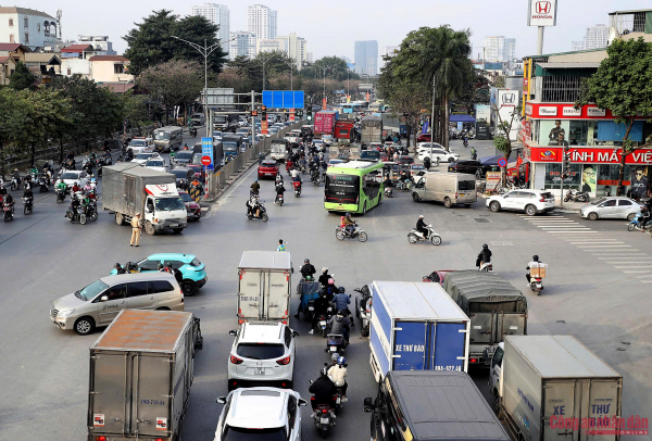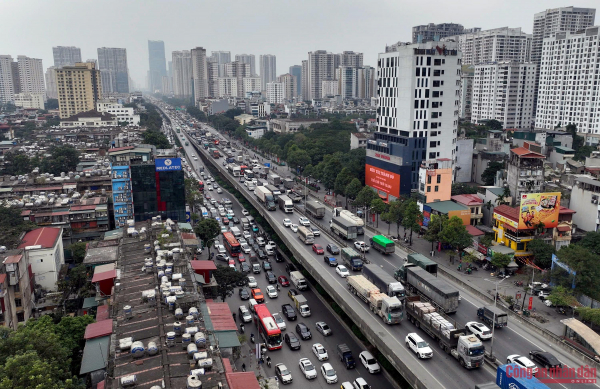 Trục đường Vành đai 3 đoạn Khuất Duy Tiến hướng ra cao tốc Pháp Vân - Cầu Giẽ và cao tốc Hà Nội - Hải Phòng, mật độ phương tiện tăng cao.