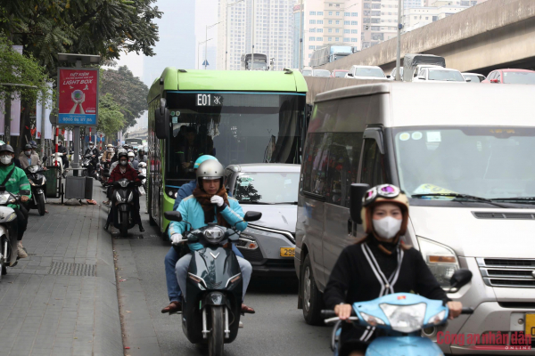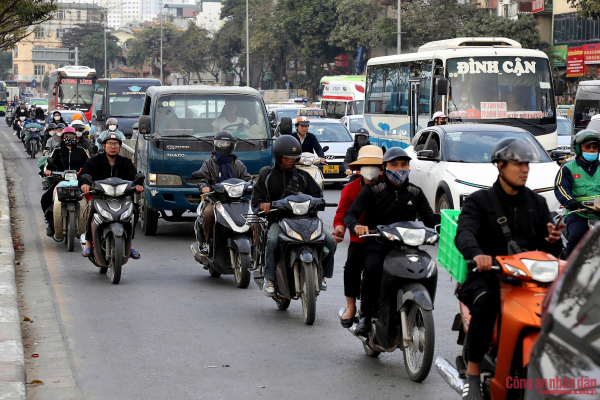 Tại khu vực trước cửa bến xe Nước Ngầm (Hà Nội), lưu lượng phương tiện gia tăng đáng kể so với ngày thường.