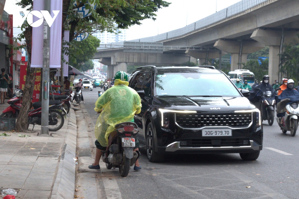 Ghi nhận tại nút giao Khuất Duy Tiến, dù đường phố Hà Nội sáng nay khá thông thoáng, nhiều phương tiện vẫn ngang nhiên dừng, đỗ sai quy định.