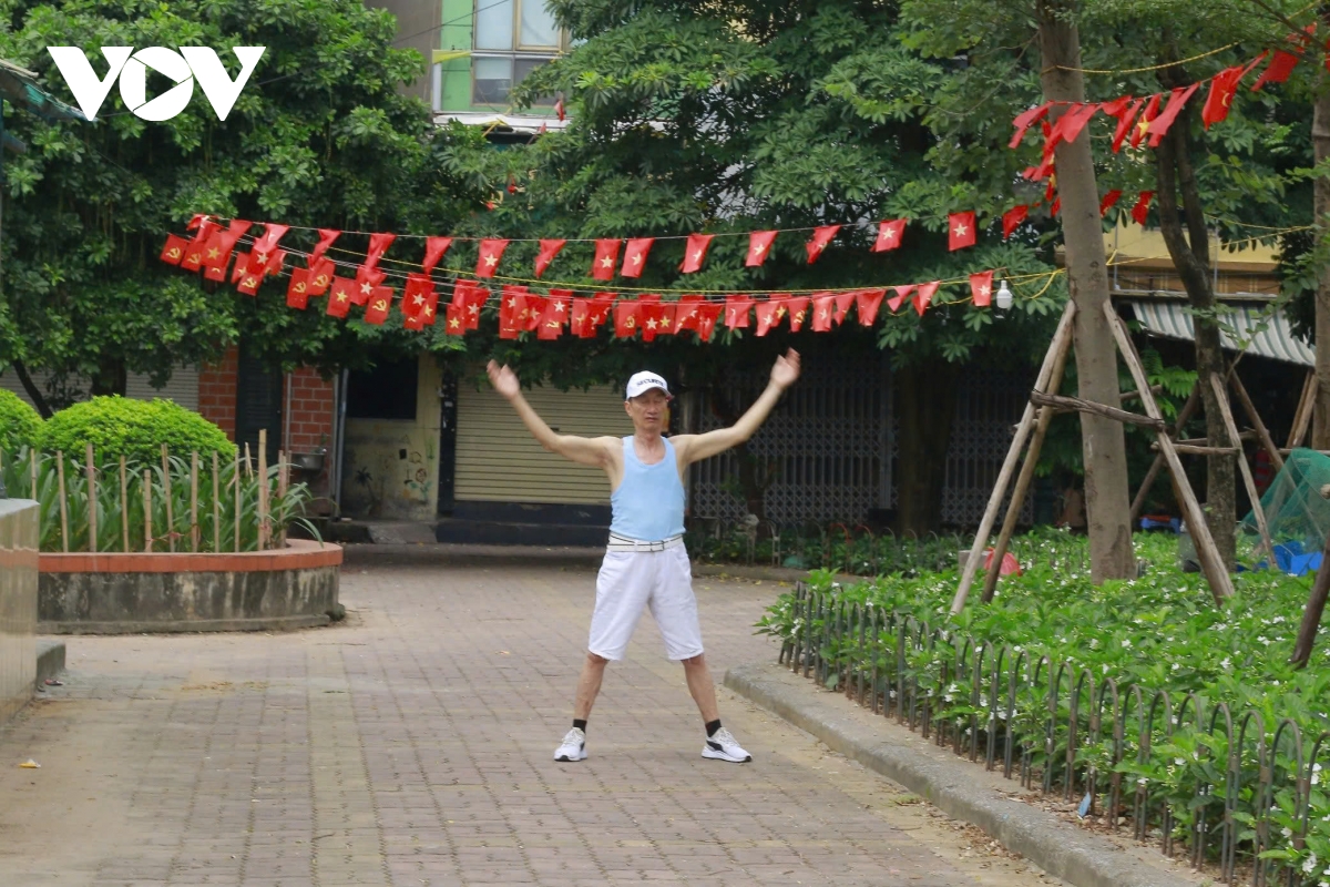“Tôi không nghĩ Hà Nội hôm nay lại bình yên đến vậy, khi thời tiết chỉ xuất hiện vài cơn mưa nhỏ cùng gió mát, tôi vẫn quyết định ra tập một bài thể dục dưỡng sinh trước giờ bão về”, người đàn ông cho biết.