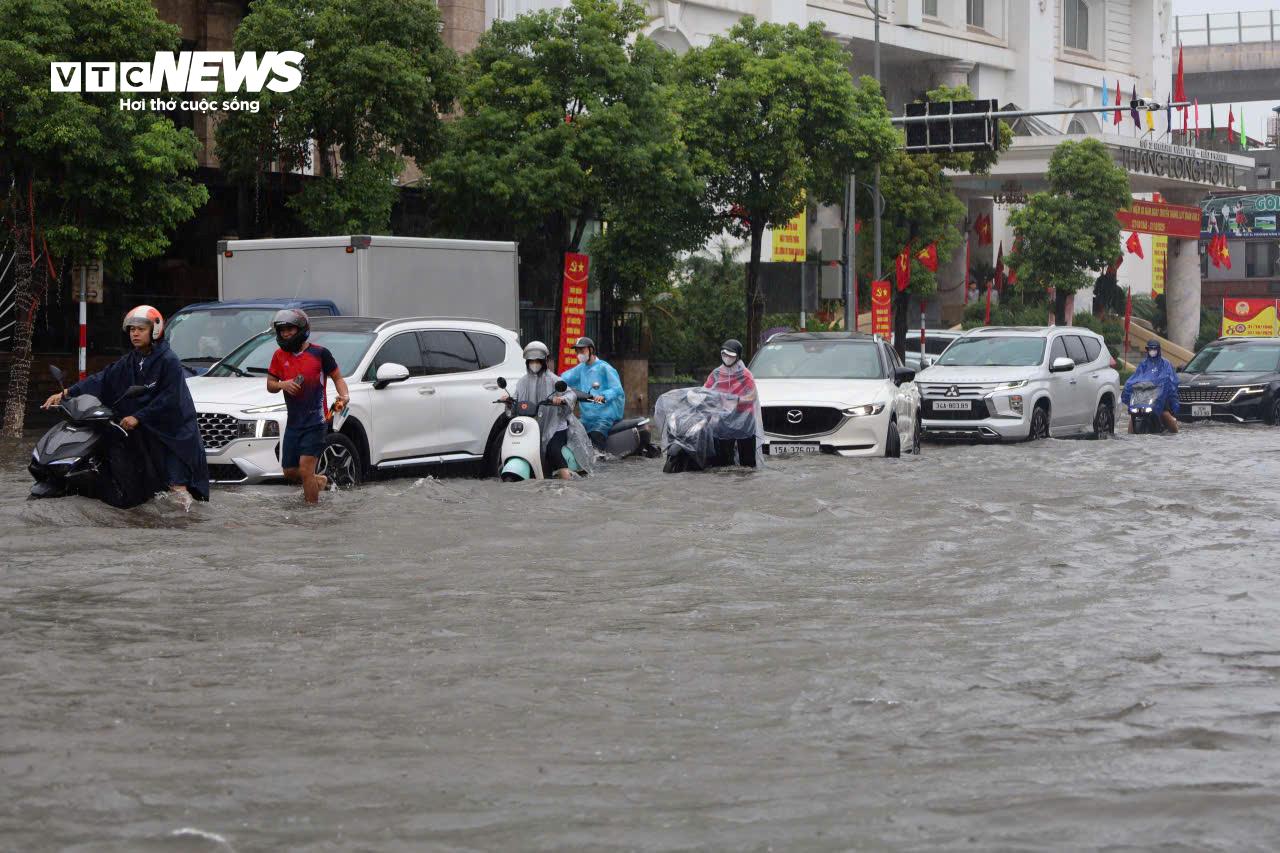 Ngập nặng khiến giao thông ùn tắc kéo dài, nhiều ô tô phải xếp hàng chờ đợi hàng giờ mà vẫn chưa thể di chuyển.