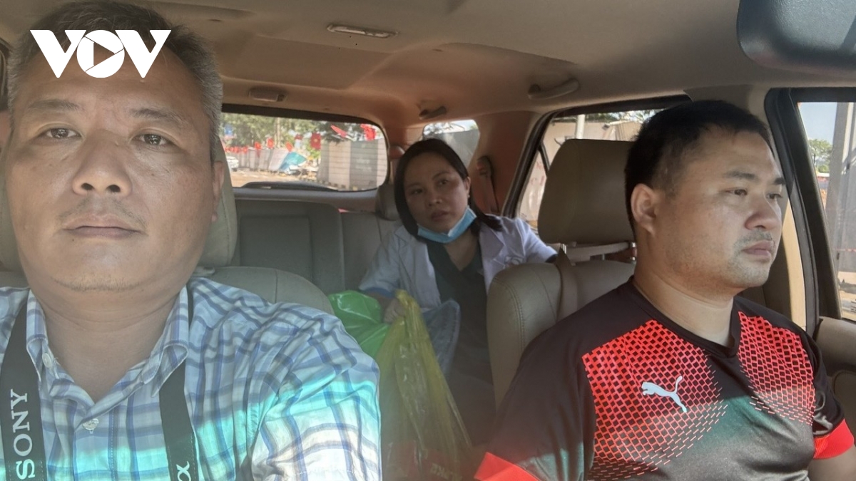 Trên đường tác nghiệp, nhóm phóng viên VOV.VN đã bắt gặp và kịp thời đưa bác sĩ Nguyễn Thị Hải - Bệnh viện A Thái Nguyên đến cấp cứu bệnh nhân bị thương do lũ lụt.