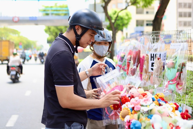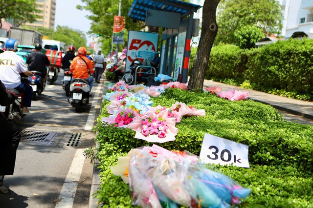Đường Nguyễn Văn Cừ tập trung nhiều trường đại học, lưu lượng người qua lại đông nên nhiều tiểu thương đã chọn nơi đây để bày bán hoa. Các sạp hoa san sát khiến con đường càng thêm nhộn nhịp.
