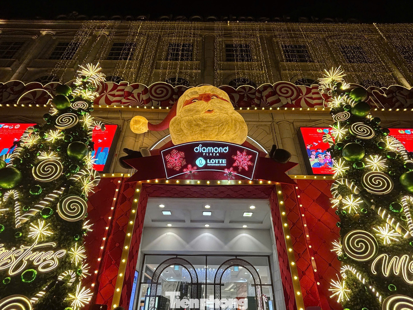 Ghi nhận tối 15/11 tại Diamond Plaza, khu vực sảnh chính và mặt tiền trung tâm thương mại đã khoác lên diện mạo mới với hệ thống đèn LED dày đặc, cây thông khổng lồ cùng cỗ xe tuần lộc và những dây kim tuyến lấp lánh. Khung cảnh trang hoàng hoành tráng khiến nơi đây nhanh chóng trở thành điểm chụp ảnh hút khách.