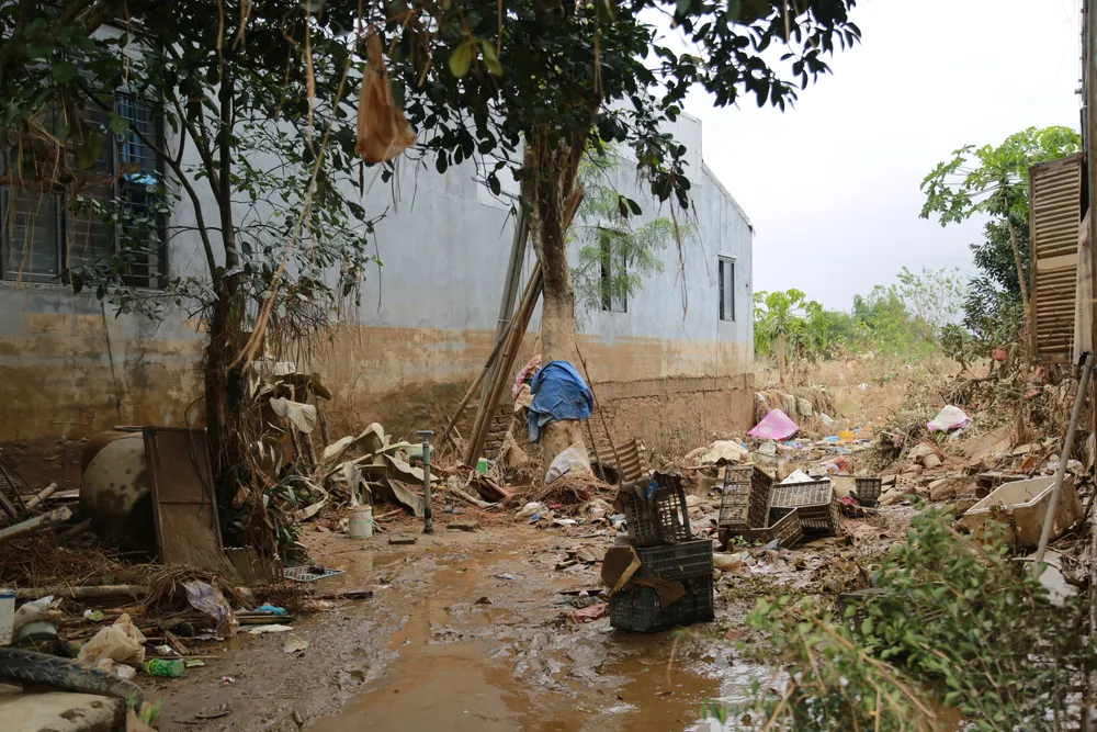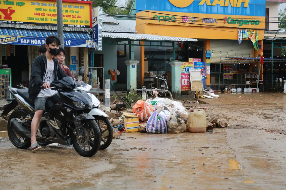 Tuy nhiên, nước cũng cuốn theo rác rến, đồ đạc hư hỏng thành từng đống trên đường. Ảnh: THANH NHẬT