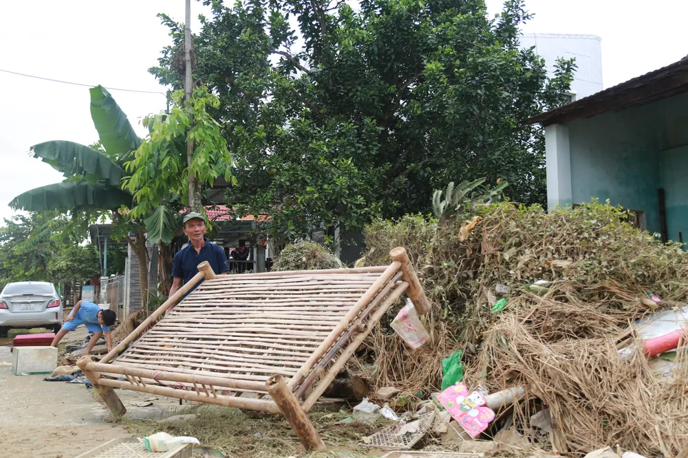 Bàn, ghế, xoong nồi... ngâm nước lũ nhiều ngày được người dân dọn dẹp, sau đó sẽ làm sạch để sớm ổn định cuộc sống. Ảnh: THANH NHẬT