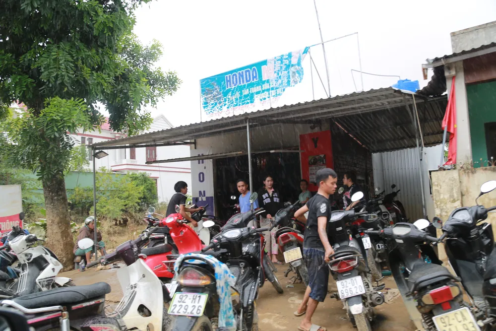Các tiệm xe máy trở nên đắt khách. Người dân đem xe đi sửa, phục vụ nhu cầu đi lại sau lũ lịch sử. Ảnh: THANH NHẬT