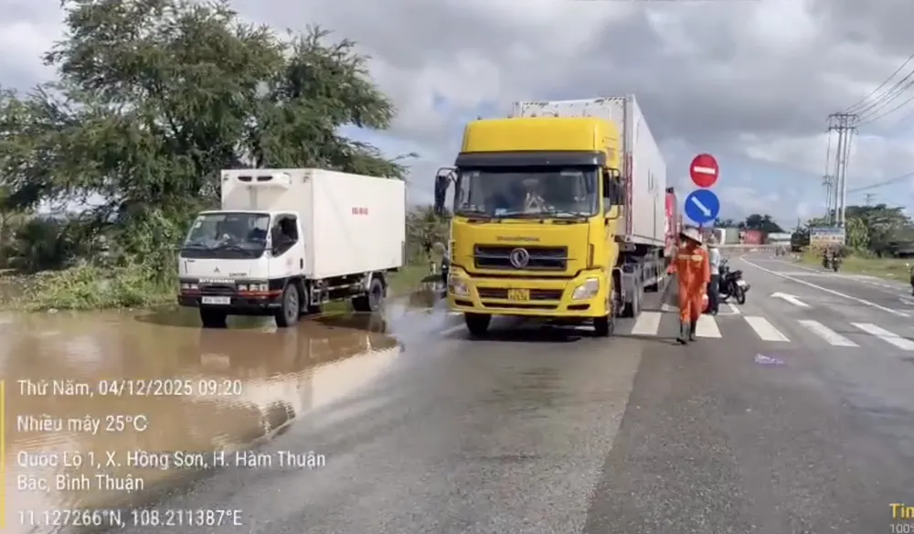 Về đường bộ, Cục Đường bộ cho biết mưa lớn cũng làm ngập Km1658+100 đến Km1658+750, Quốc lộ 1 thuộc xã Lương Sơn, tỉnh Lâm Đồng. Hiện đường đã cho phương tiện lưu thông trở lại dưới sự điều tiết của lực lượng chức năng.