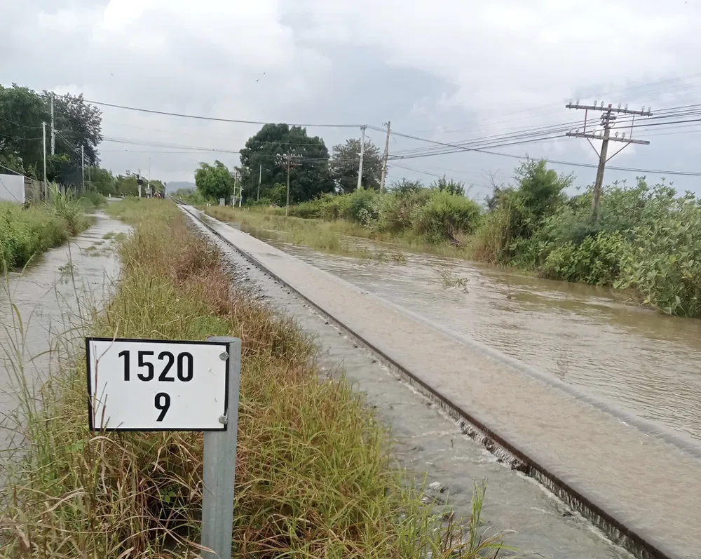 Theo đó, từ 8 giờ 30 cùng ngày, nước từ thượng nguồn đổ về làm ngập đường ray khu gian Long Thạnh – Sông Lũy. Nước cũng dâng tràn qua dầm cầu đường sắt Ma Lâm (Km 1531+123) bắc qua sông Cái nên ngành phải dừng chạy tàu và điều tàu hàng gia tải để giữ cầu.