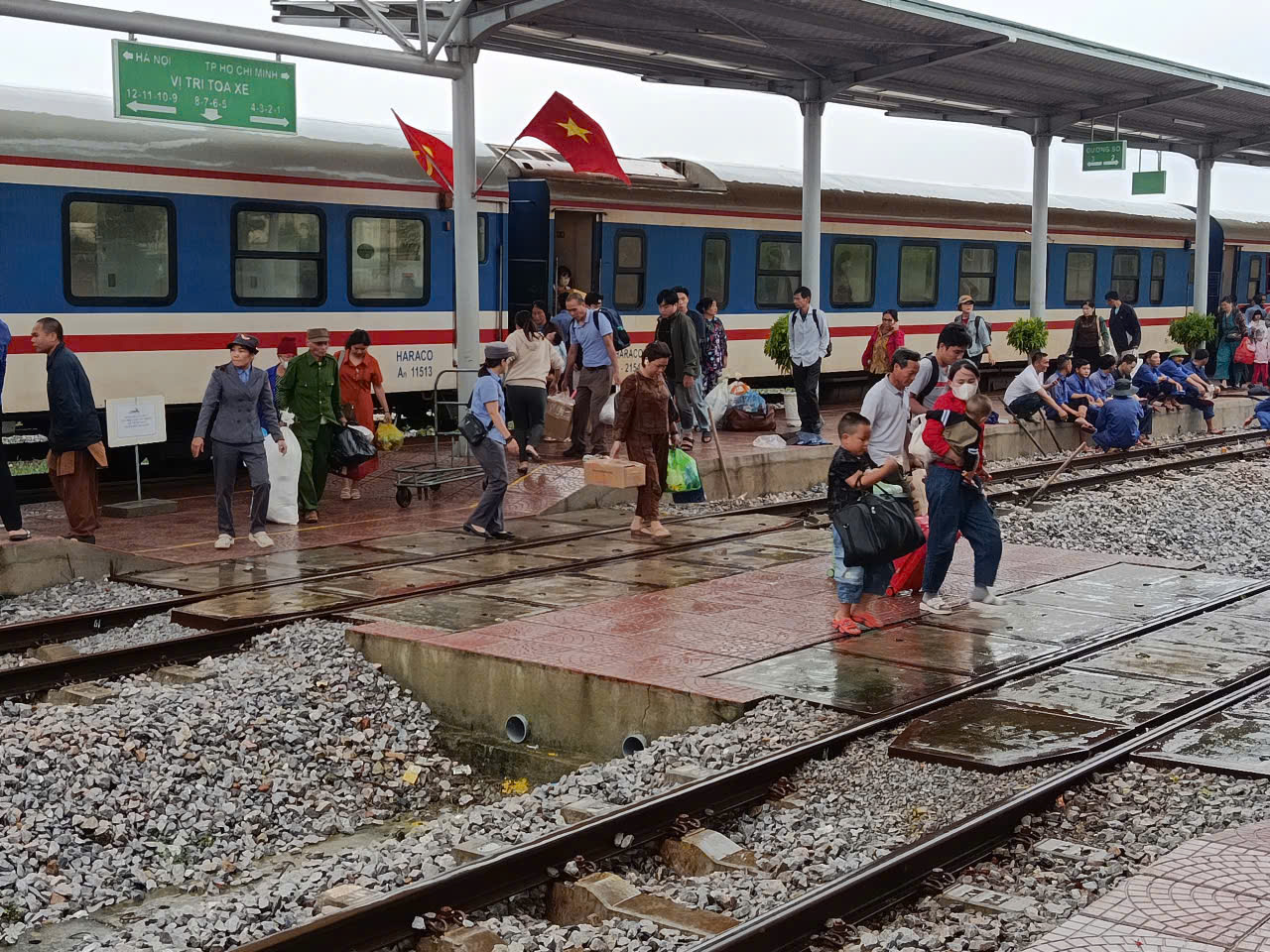 Do chưa dự kiến được thời gian thông đường vì diễn biến phức tạp của thời tiết, các tàu đang chạy trên đường bị chậm nhiều giờ, nằm chờ ở các ga chờ chuyển tải.