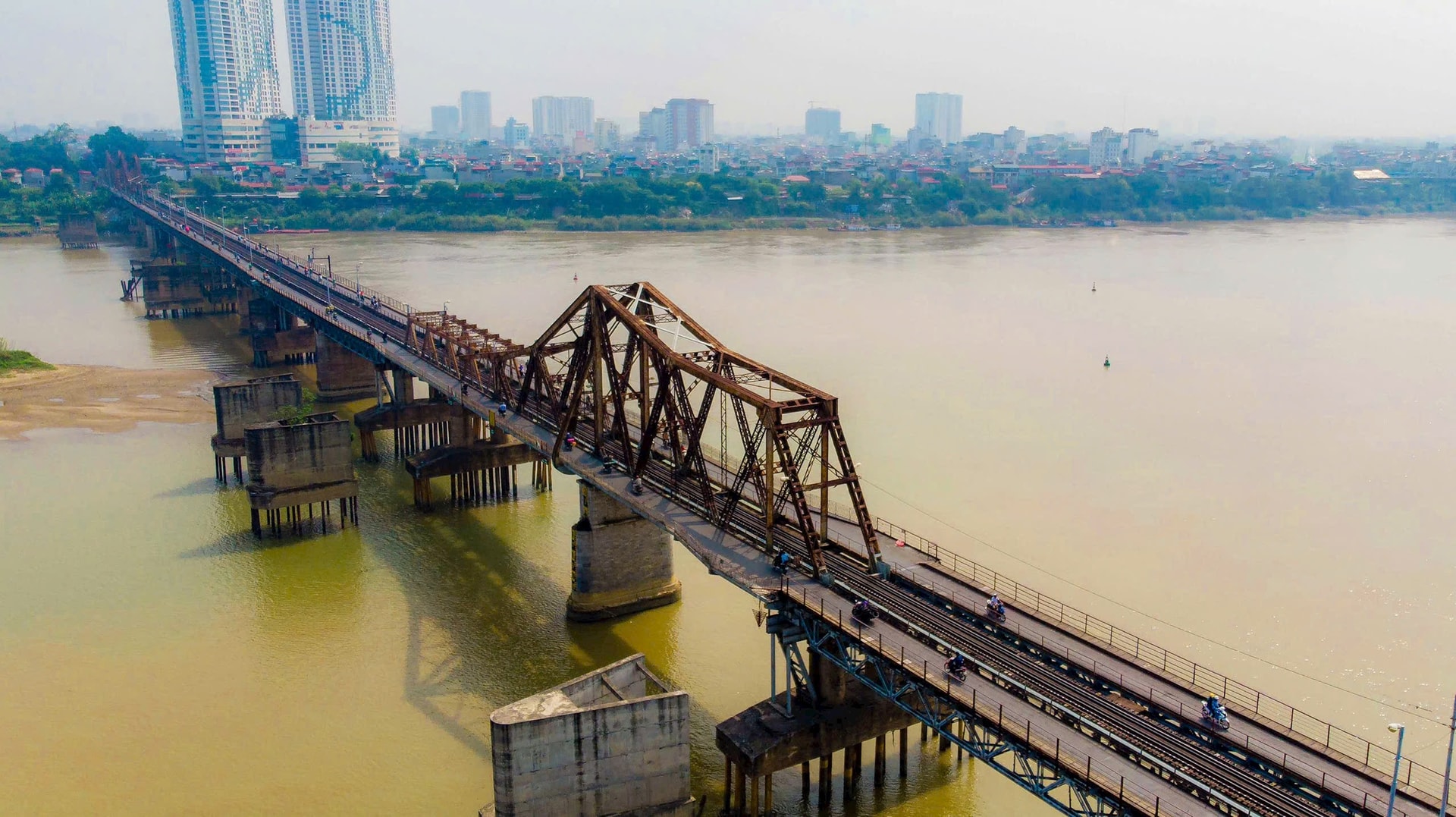 Cầu Long Biên – tuyến đường sắt lịch sử bắc qua sông Hồng, kết nối khu vực trung tâm Hà Nội với phía Bắc. Ảnh: Duy Khánh