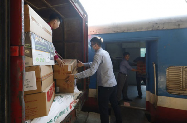 Ngành đường sắt hỗ trợ vận chuyển hàng cứu trợ tới người dân gặp lũ, lụt.