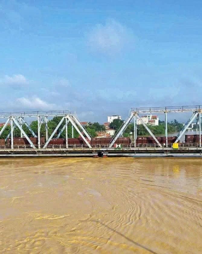 Phong tỏa đường sắt tại cầu Bắc Giang vào lúc 8h10 ngày 8/10/2025 lúc mực nước cách đáy dầm 0,95m.
