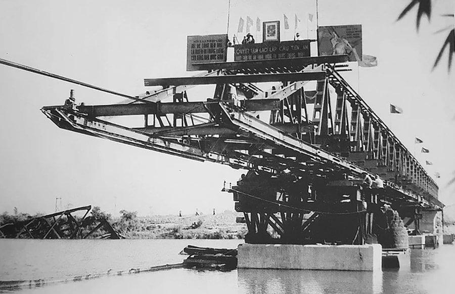 Lao dầm cầu đường sắt Tiên An vượt sông Hiền Lương, Quảng Trị trên tuyến đường sắt Bắc - Nam. Ảnh tư liệu của Tổng Công ty Đường sắt Việt Nam.