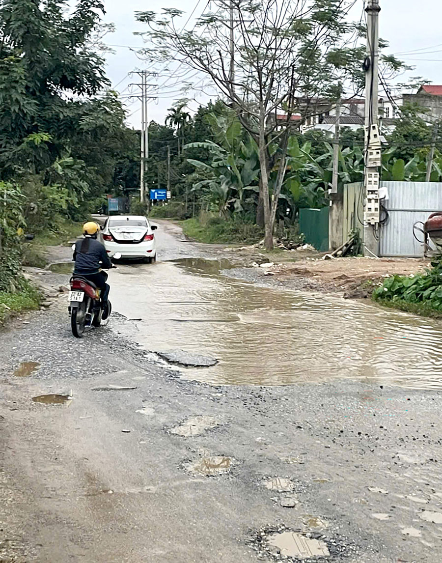 Từ nhiều tháng nay, đoạn đường Thanh Niên, thuộc tổ Kim Phú 2, phường Minh Xuân xuống cấp nhanh, xuất hiện nhiều ổ gà, ổ voi... Sau mỗi trận mưa, mặt đường ngập úng gây nguy hiểm cho người tham gia giao thông. Rất mong cơ quan chức năng quan tâm, có giải pháp khắc phục (Ảnh chụp ngày 19/11/2025). Ảnh: Đinh Công