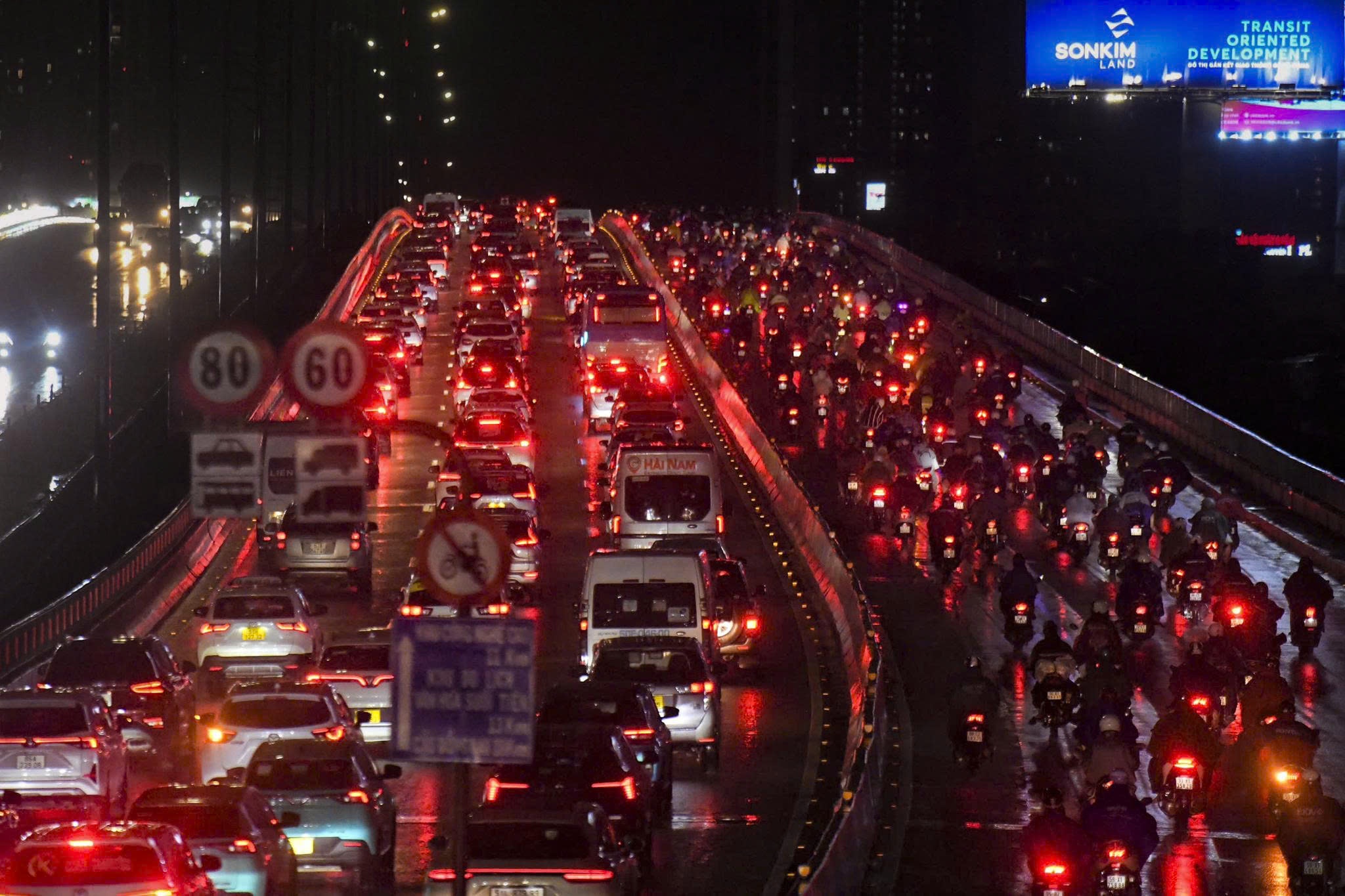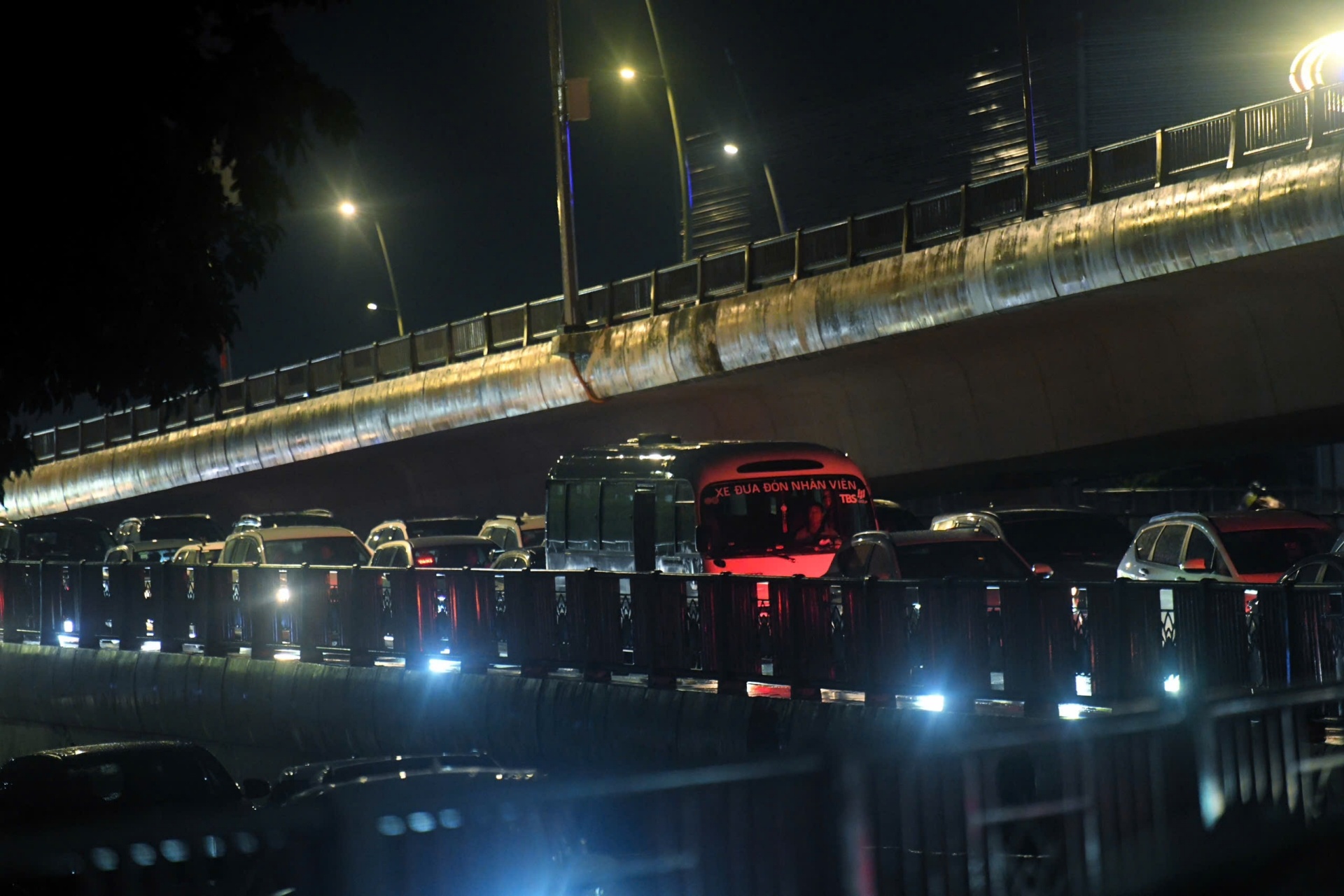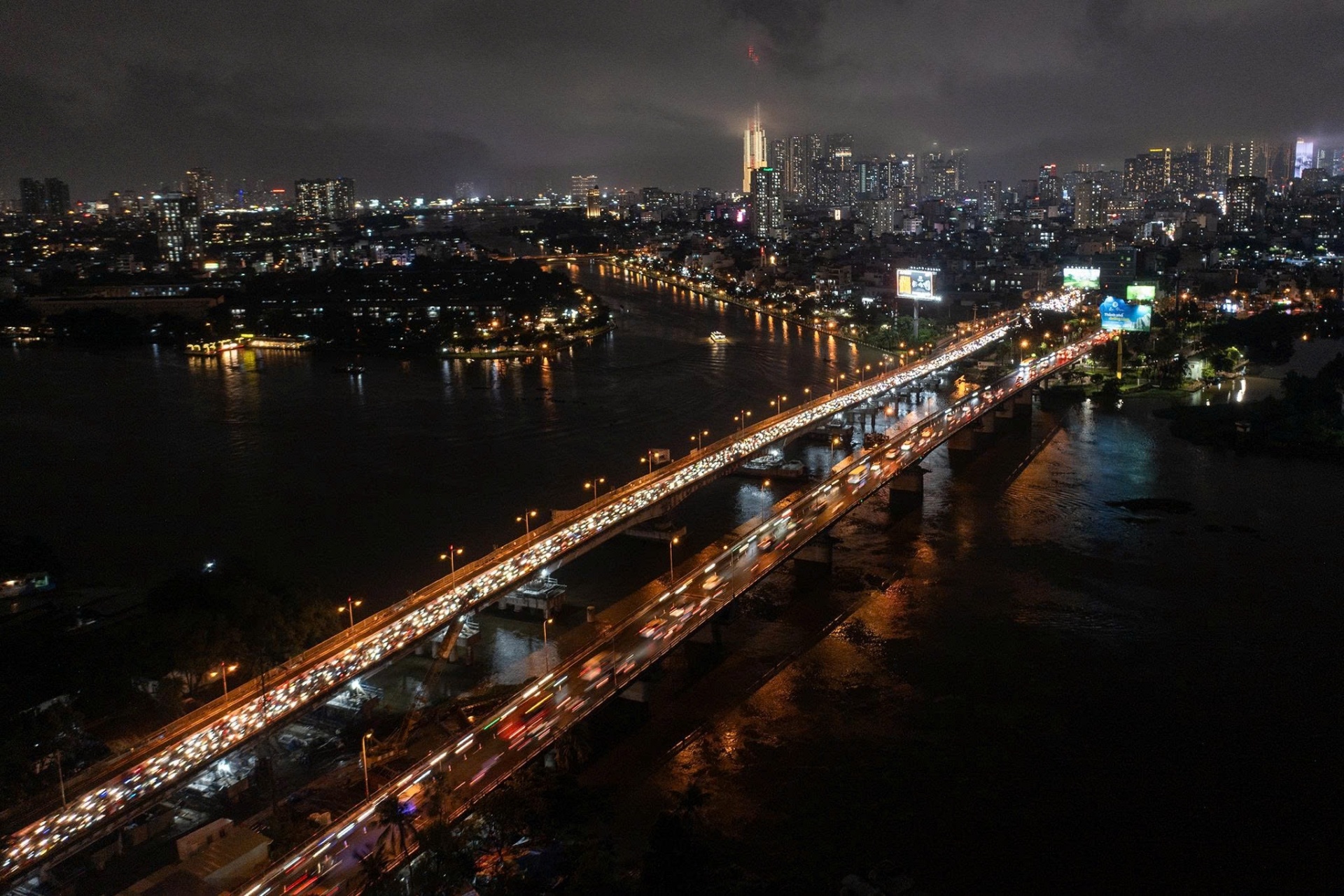 Hàng dài xe lưu thông qua cầu Sài Gòn, hướng từ Điện Biên Phủ sang Thủ Đức tối 8/10. Ảnh: Duy Hiệu.
