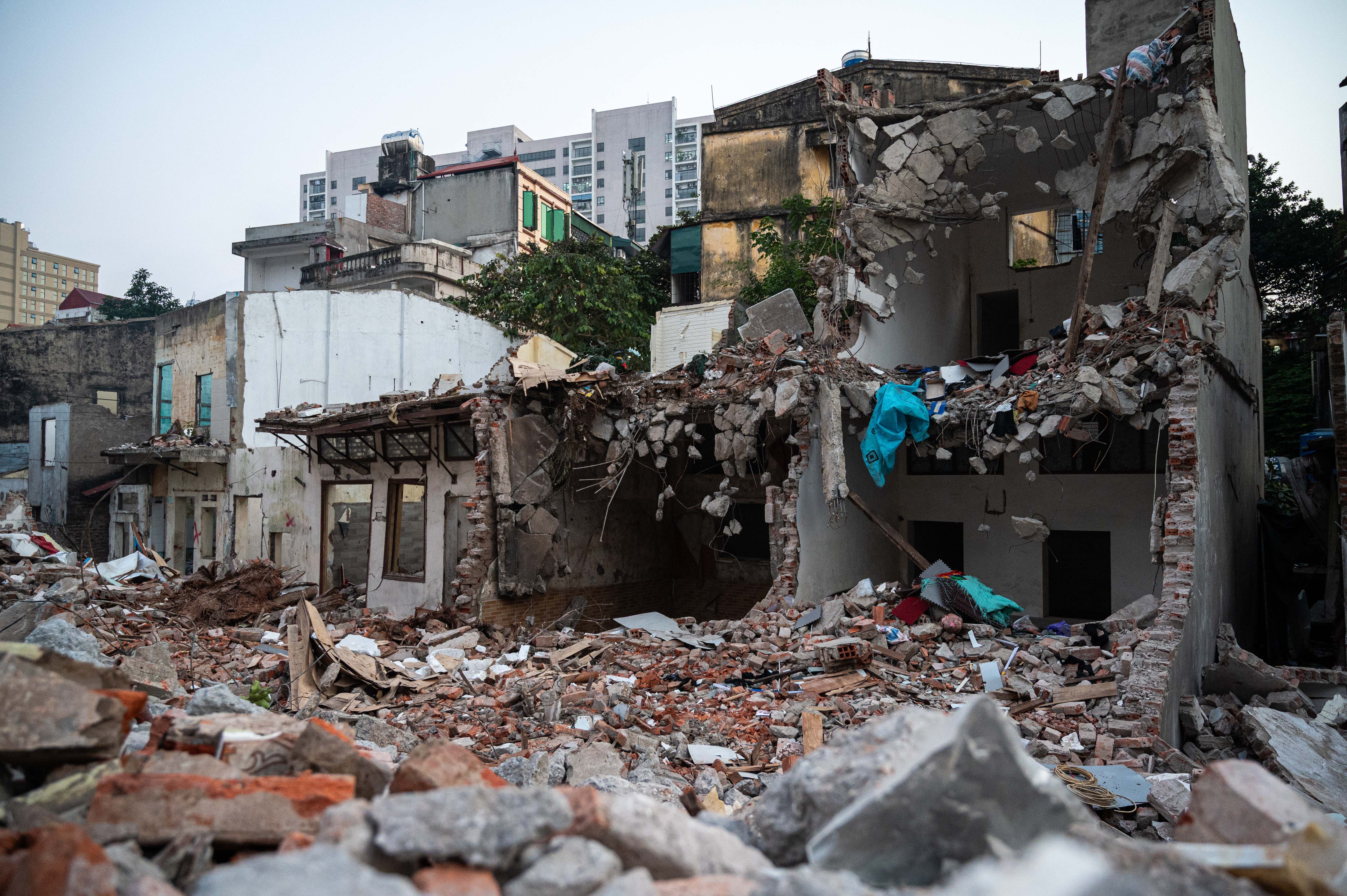 Tại hiện trường, nhiều người thu mua phế liệu cũng tranh thủ thu gom sắt thép và các vật liệu còn sử dụng được từ các công trình vừa được phá dỡ.