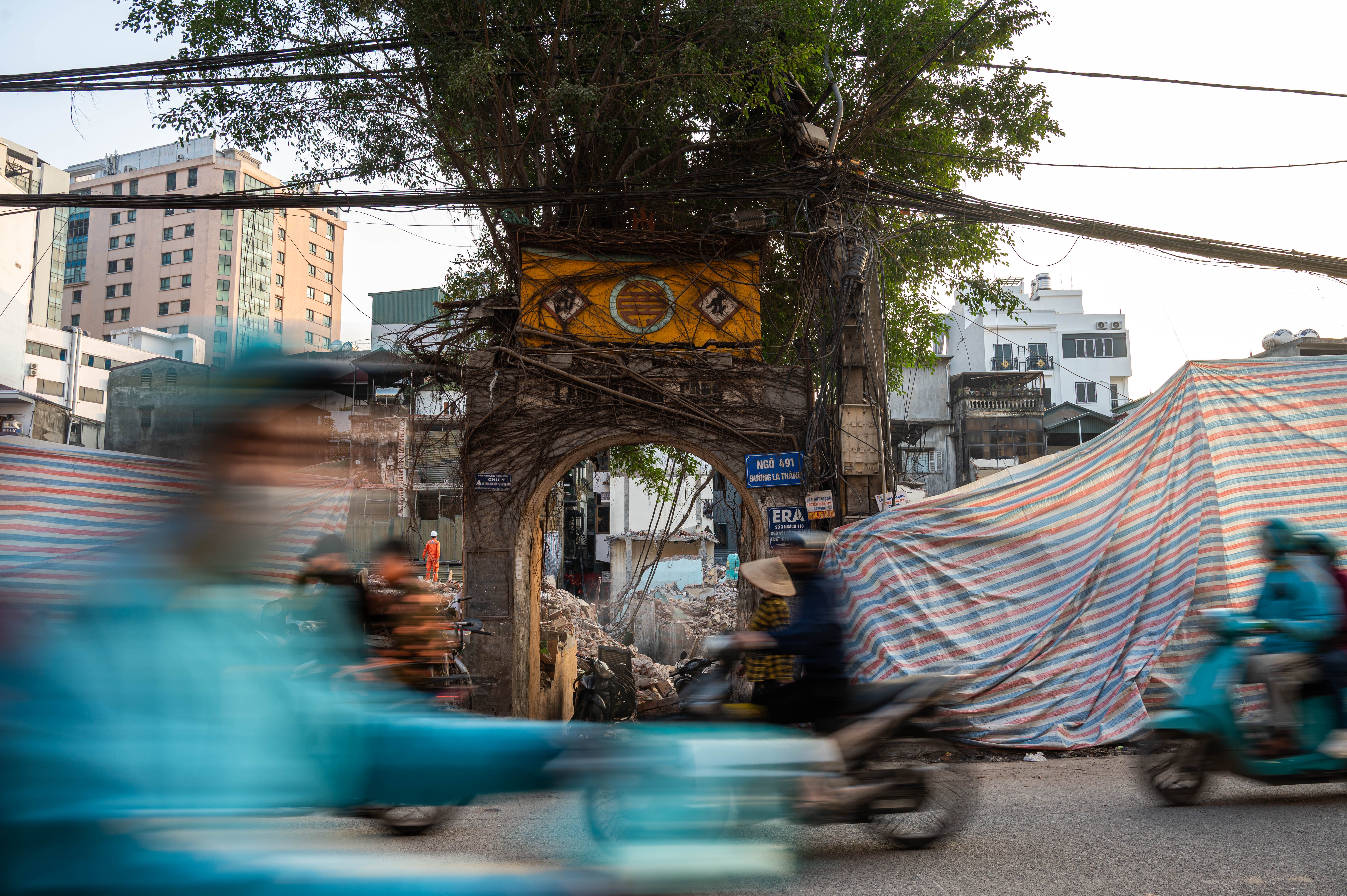 Khu vực cổng ngõ 491 đường La Thành trơ trọi sau khi các công trình lân cận bị dỡ bỏ.