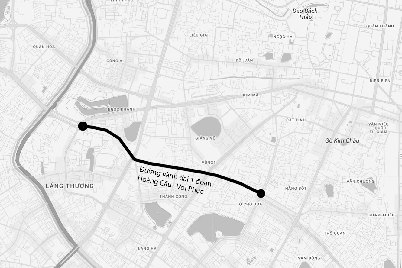 Dự án xây dựng đường Vành đai 1 đoạn Hoàng Cầu - Voi Phục dài hơn 2,2 km, mặt cắt ngang 50 m. Điểm đầu giao với đường Cát Linh - La Thành - Yên Lãng tại Hoàng Cầu, điểm cuối tại nút giao thông Voi Phục, đi qua nhiều trường học, bệnh viện và khu dân cư đông đúc bậc nhất Hà Nội.