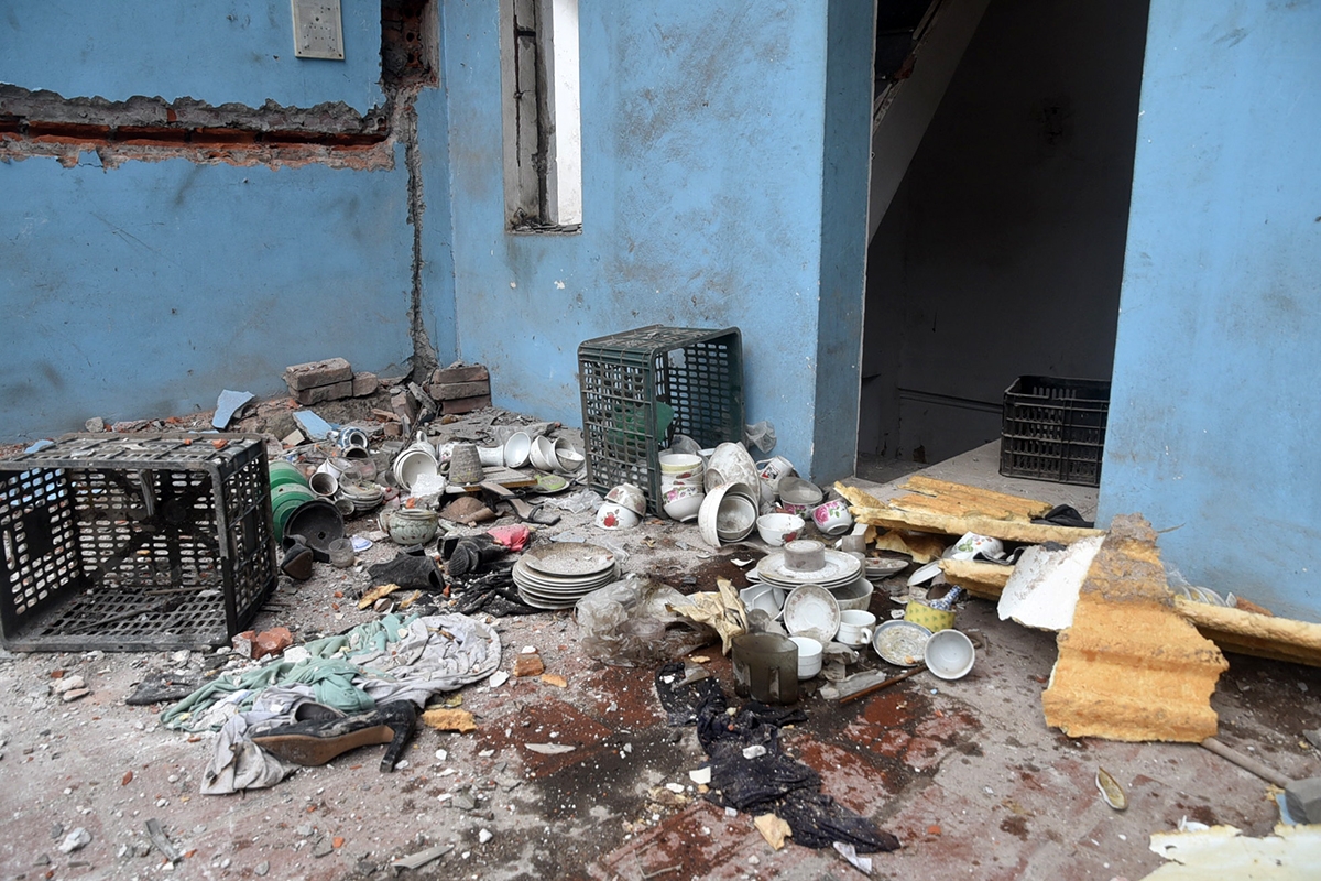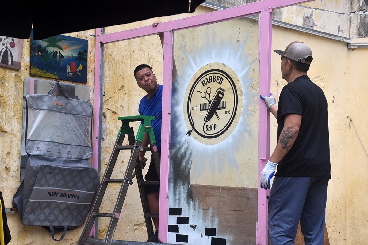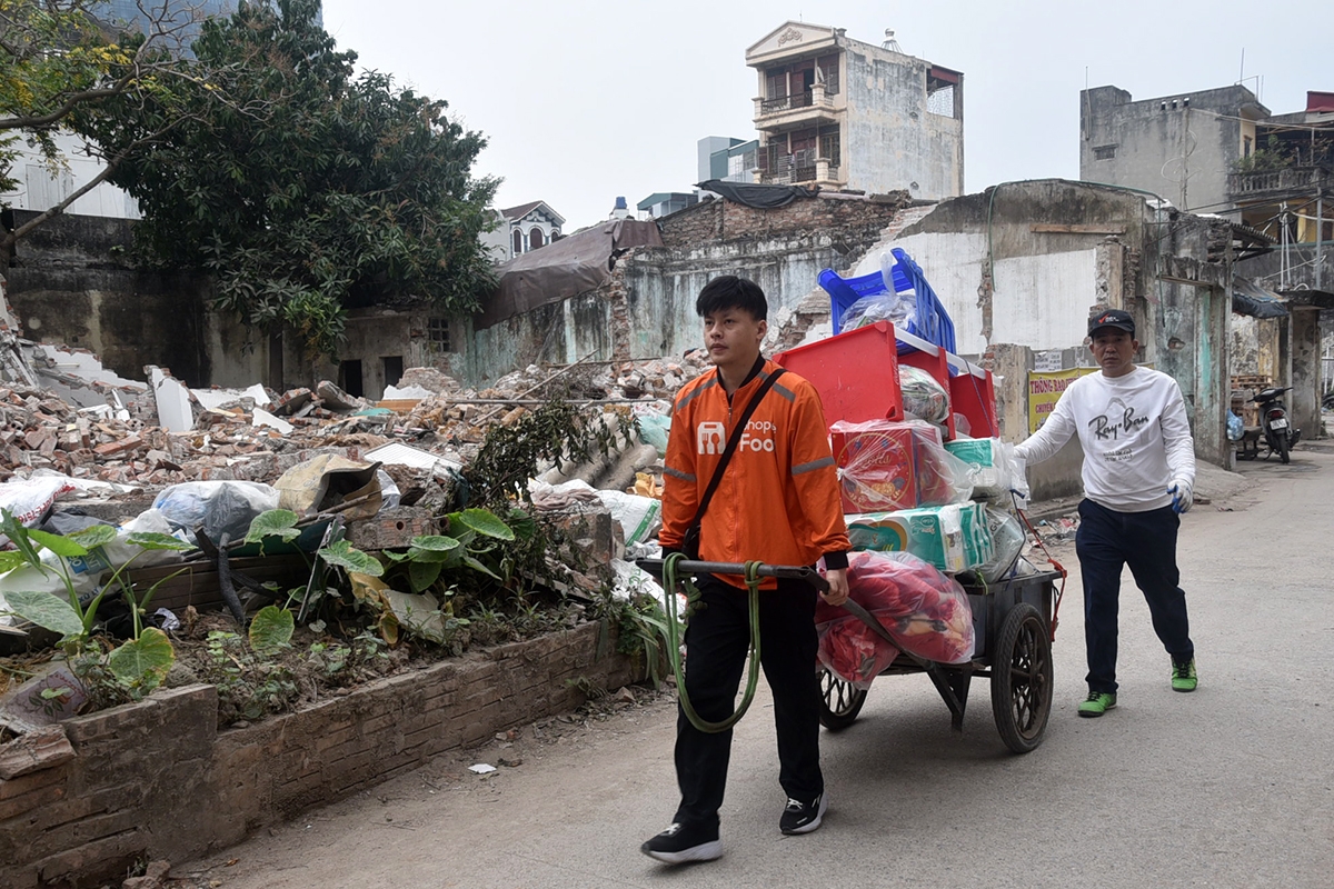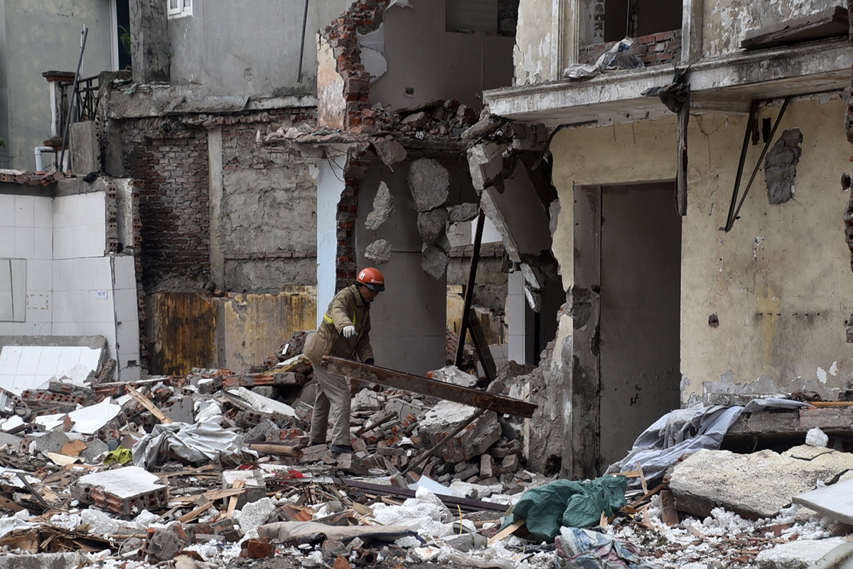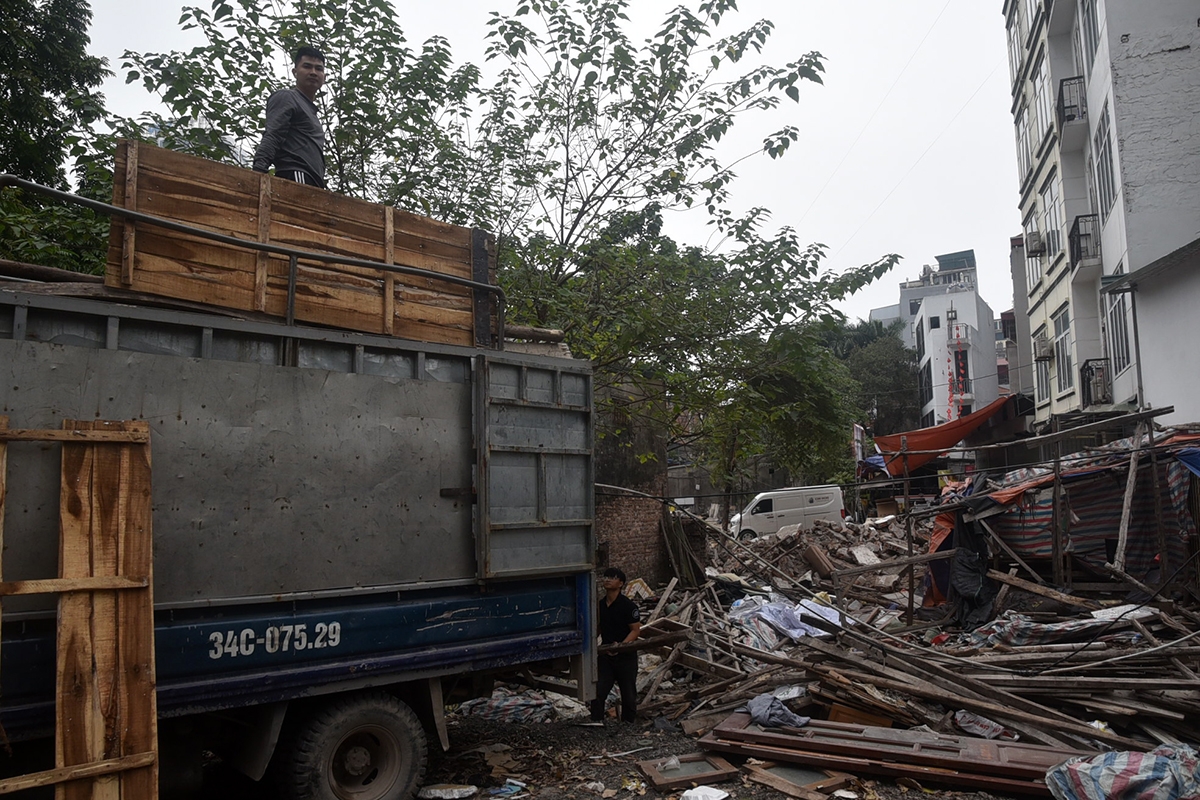 Người dân thu gom, phân loại vật liệu sau phá dỡ để vận chuyển ra khỏi khu vực.