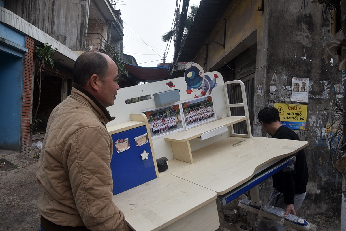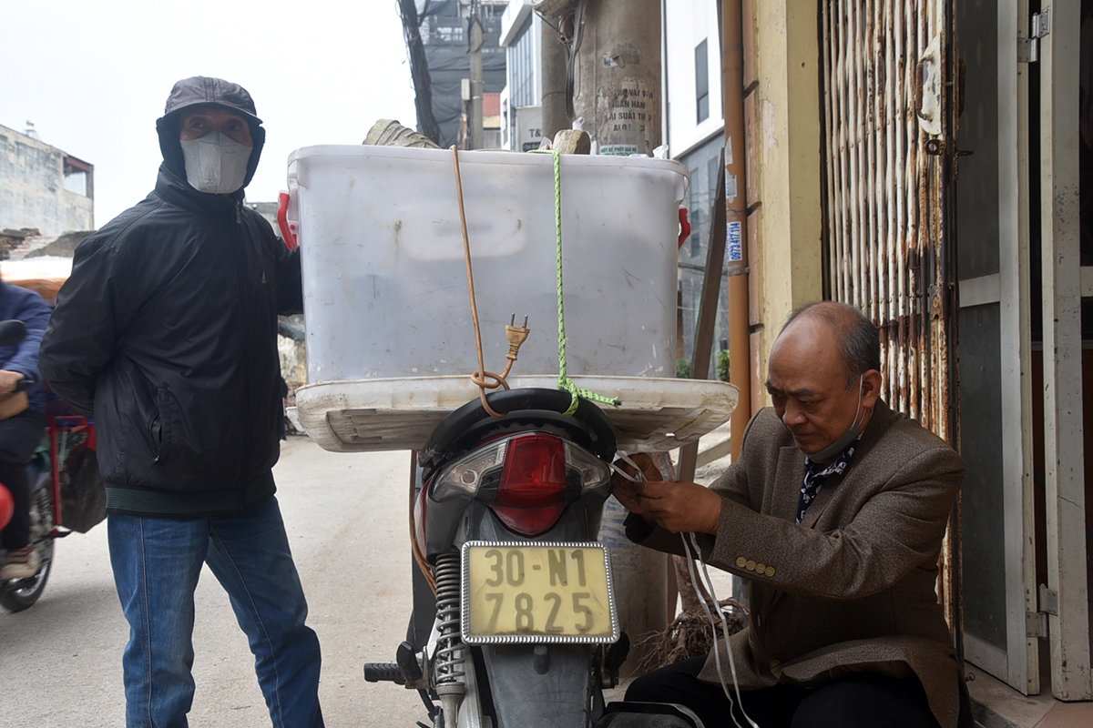 Những đồ đạc cuối cùng được cho vào thùng lớn chở sau xe máy.