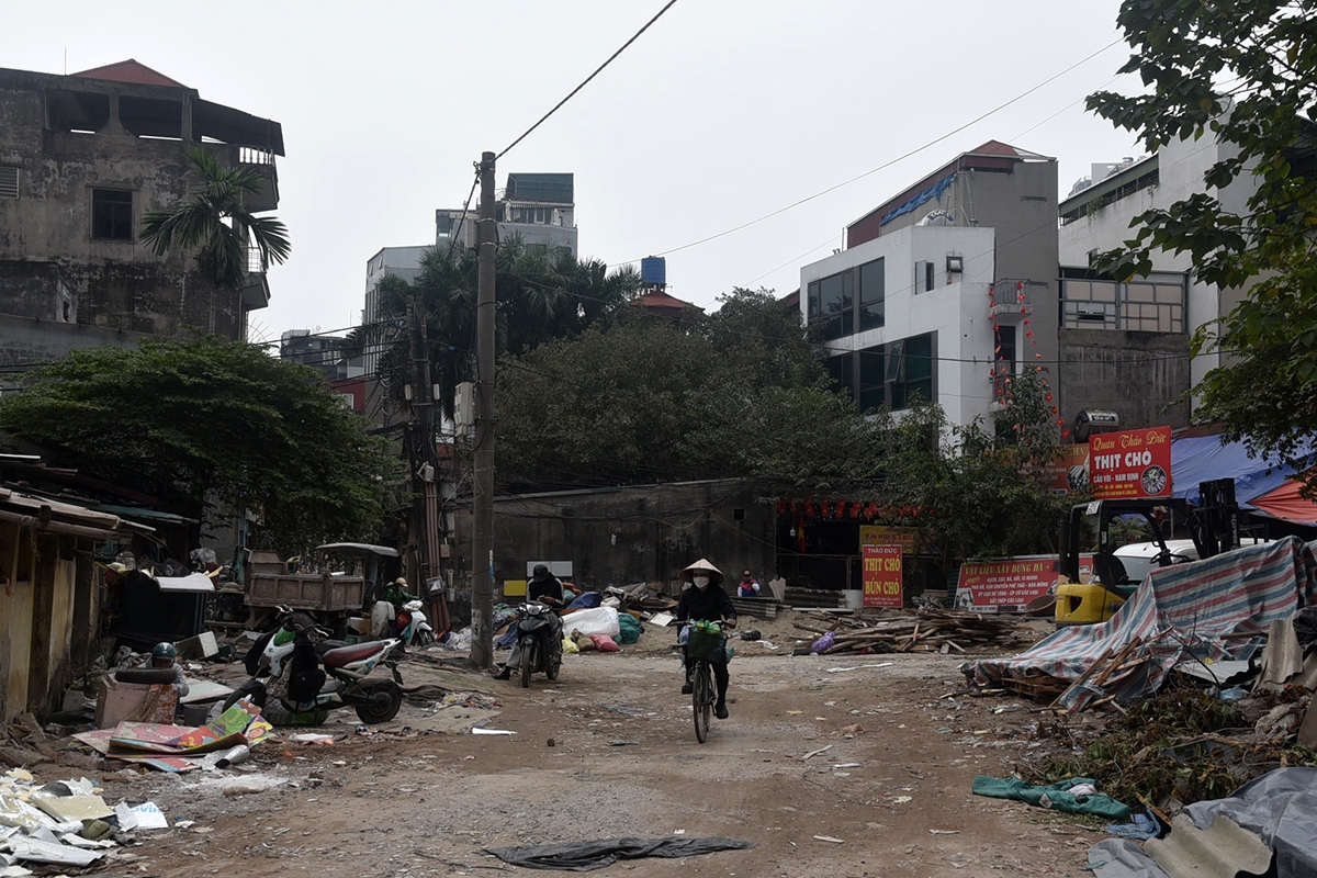 Ghi nhận tại đoạn từ đường Cầu Giấy đến Khu đô thị mới Dịch Vọng, tại ngõ 165 Cầu Giấy nhiều hộ dân đang tích cực thu dọn, bàn giao mặt bằng. Khu vực tiếp giáp phố Cầu Giấy nhiều năm trước đã tiến hành GPMB, trong đó có nhiều hộ dân bàn giao mặt bằng, tuy nhiên do nhiều vướng mắc rào tôn bỏ hoang nhiều năm.