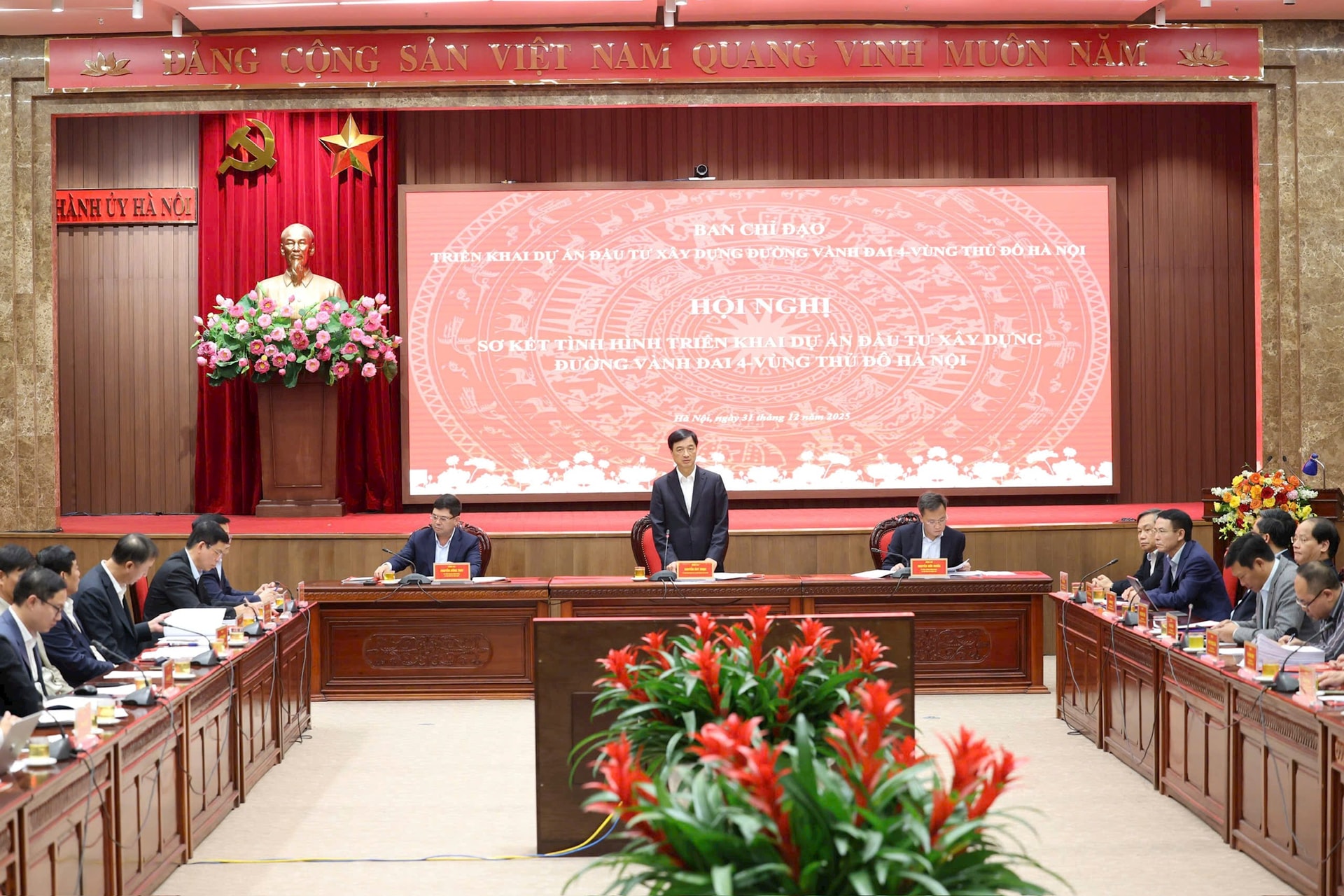 Quang cảnh hội nghị sơ kết tình hình triển khai dự án đầu tư xây dựng Vành đai 4 - Vùng Thủ đô Hà Nội chiều 31-12-2025. Ảnh: Viết Thành
