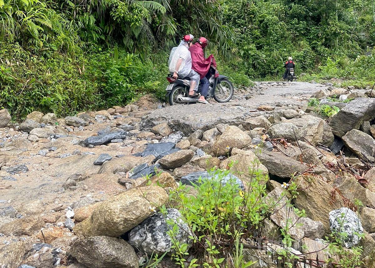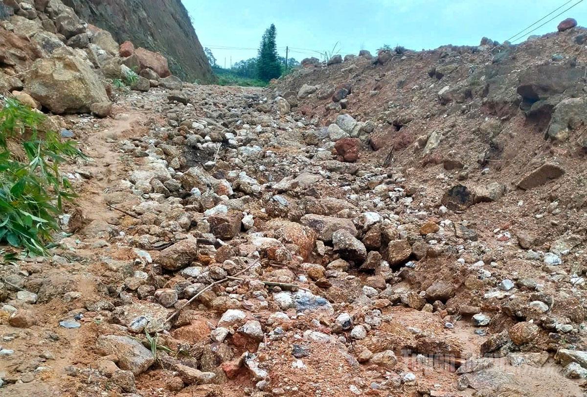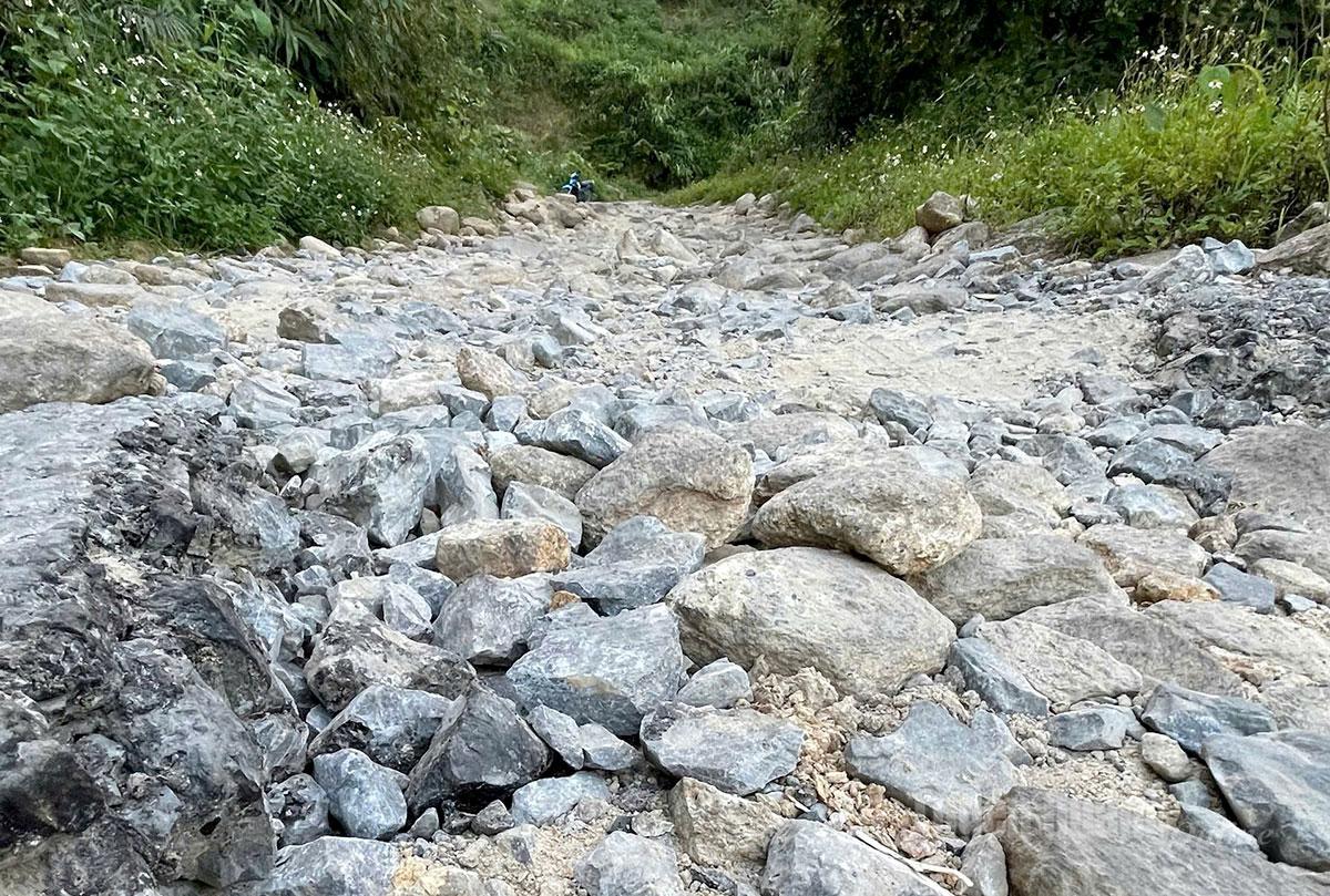 Toàn bộ mặt đường đã bị phá hủy, đá lởm chởm