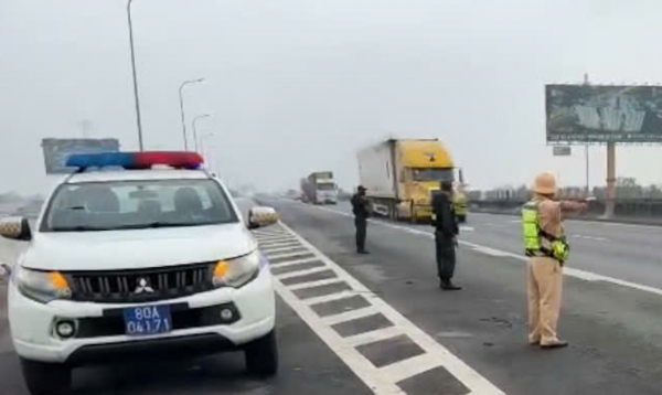 Đội CSGT đường bộ cao tốc số 7 khuyến cáo người điều khiển phương tiện an toàn vì cái tết đầm ấm, sum vầy.