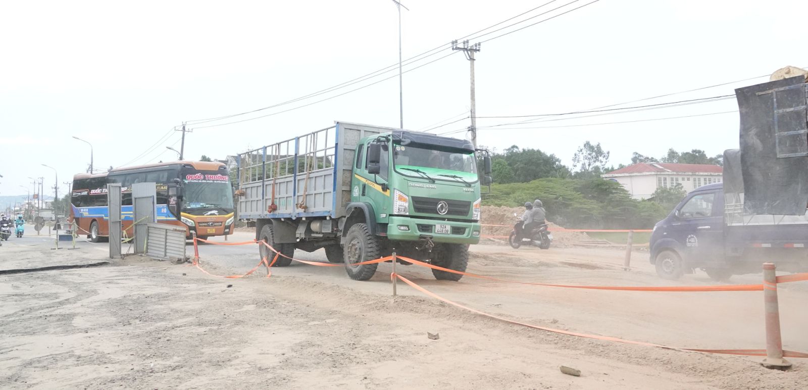 Do đây là tuyến độc đạo nên các đơn vị phải vừa thi công, vừa điều tiết giao thông.