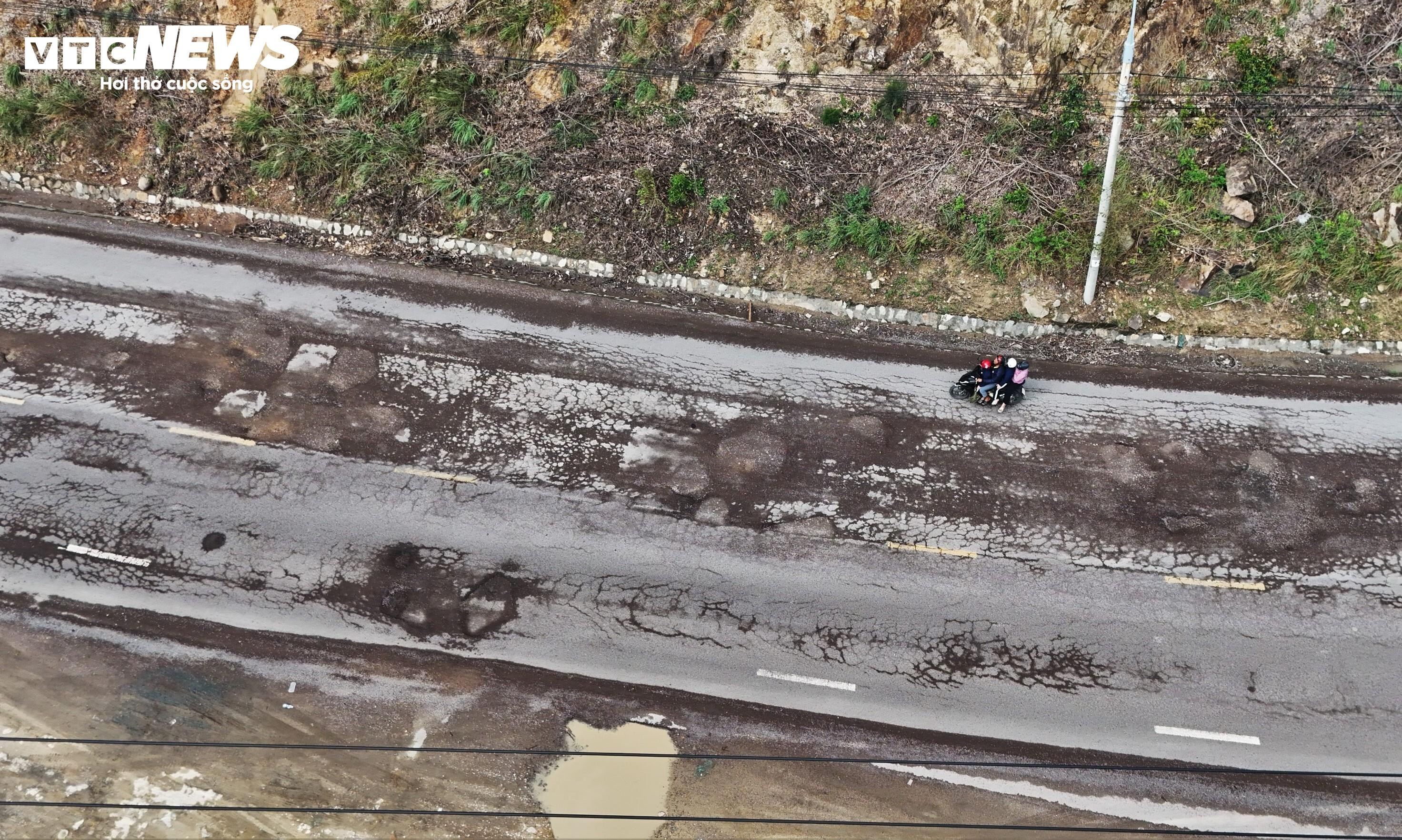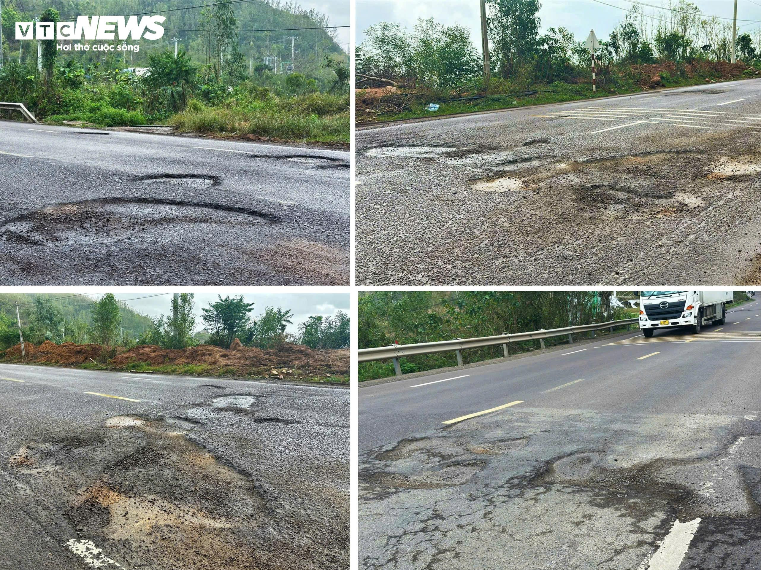 Ghi nhận của PV Báo Điện tử VTC News, những ngày qua một số đoạn trên tuyến Ql1D lởm chởm các ổ voi, ổ gà.