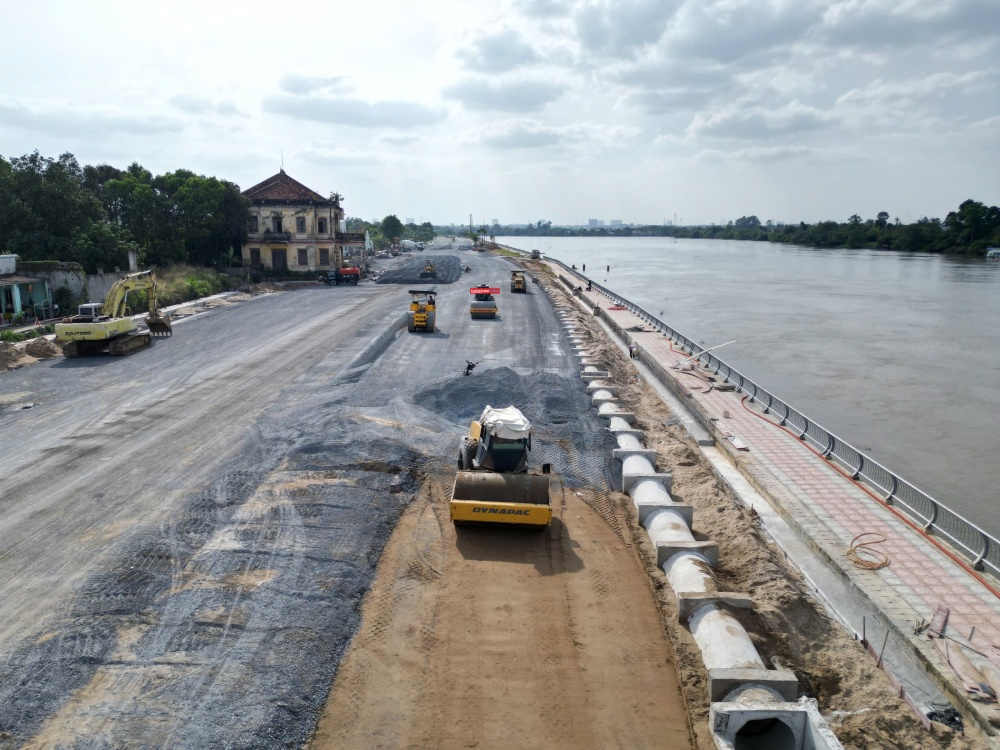 Hơn 5km mặt đường đã thảm nhựa, bó vỉa, dải phân cách và hệ thống chiếu sáng hoàn thiện, tạo diện mạo mới cho bờ sông. Nhiều đoạn của dự án đã hoàn thành với đường 2 chiều, ở giữa có dải phân cách.
