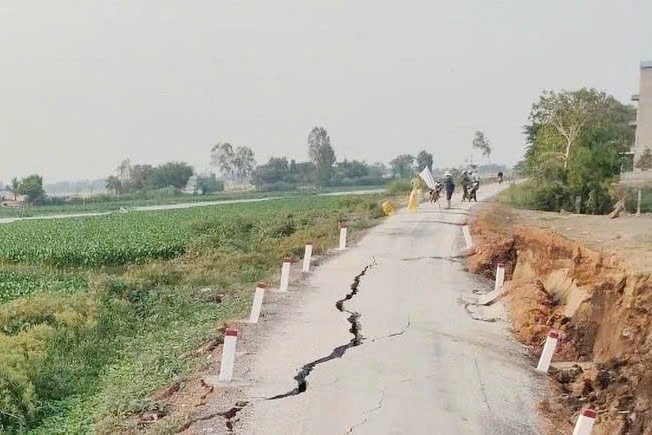 Trước đó, khoảng 15 giờ ngày 12/4, đoạn đường ven sông Lò Gạch dài khoảng 60m bất ngờ sụt lún, toàn bộ phần mặt đường trượt về phía lòng sông.