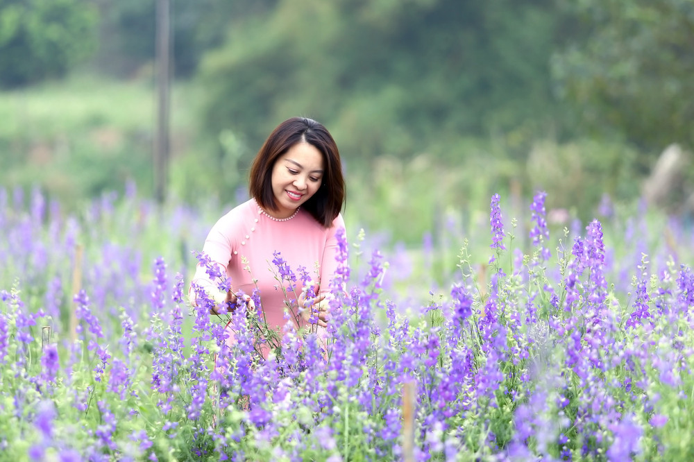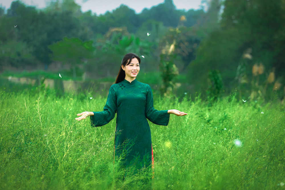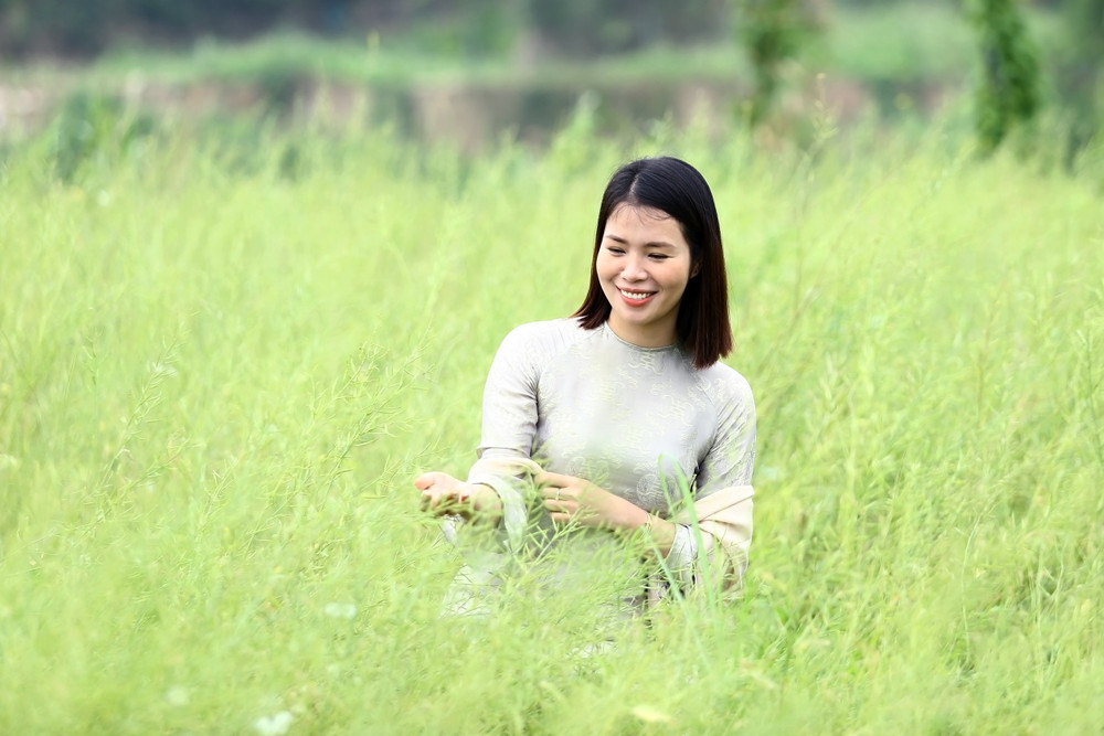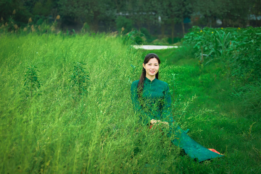 Nụ cười nhẹ nhàng giữa không gian xanh