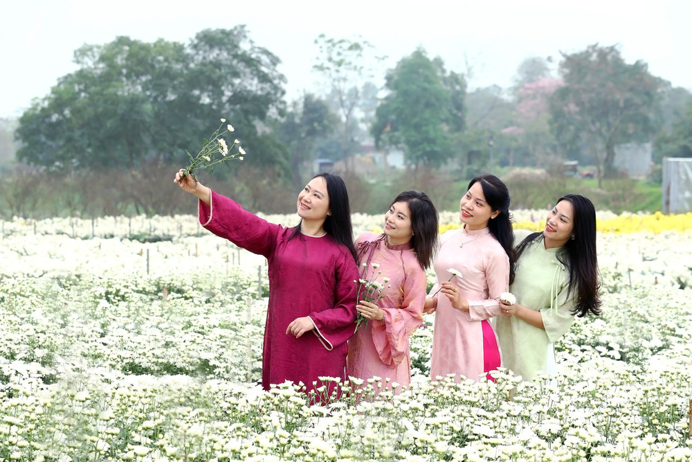 Nhân dịp này, các nữ cán bộ, chiến sĩ Công an Thủ đô đã cùng nhau lưu lại nhiều khoảnh khắc đẹp trong tà áo dài truyền thống