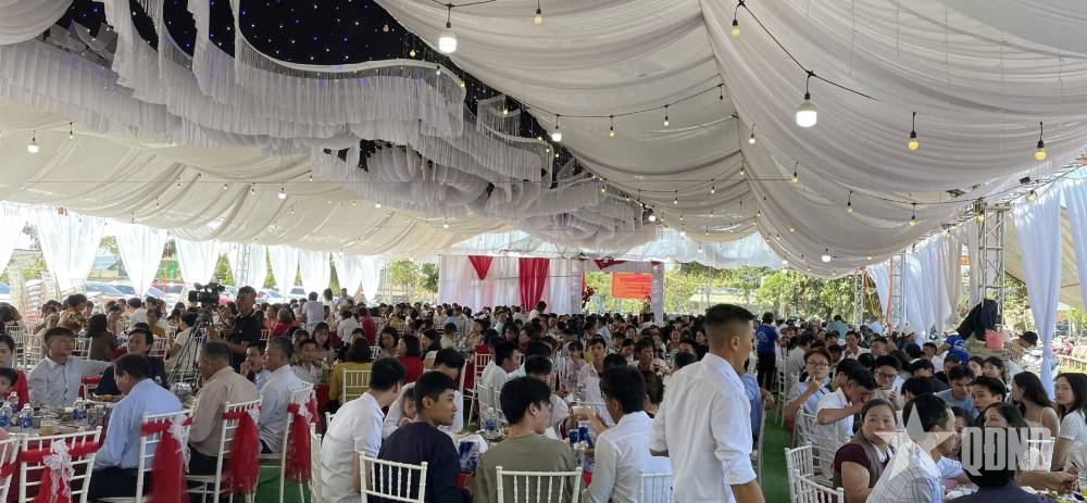 Trong rạp cưới, sắc váy của cô dâu đi bên chú rể trong bộ quân phục, tạo nên bức tranh vừa đời thường vừa trang nghiêm. Những cái bắt tay chặt, những lời chúc ngắn gọn mà ấm áp khiến ngày vui mang dáng dấp của một cuộc gặp gỡ quân dân: Giản dị, kỷ luật, thắm tình.