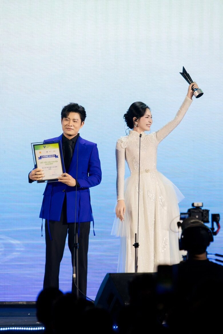 Đáng chú ý nhất là ca khúc "Viết tiếp câu chuyện hòa bình" của nhạc sĩ Nguyễn Văn Chung do cô thể hiện. Dù phát hành từ năm 2023, tác phẩm đã bùng nổ mạnh mẽ trong các dịp đại lễ gần đây, đạt cột mốc 10 tỷ lượt xem trên các nền tảng mạng xã hội. Thành công này giúp cô lọt vào danh sách đề cử giải thưởng Làn sóng xanh và mở ra nhiều cơ hội biểu diễn lớn.
